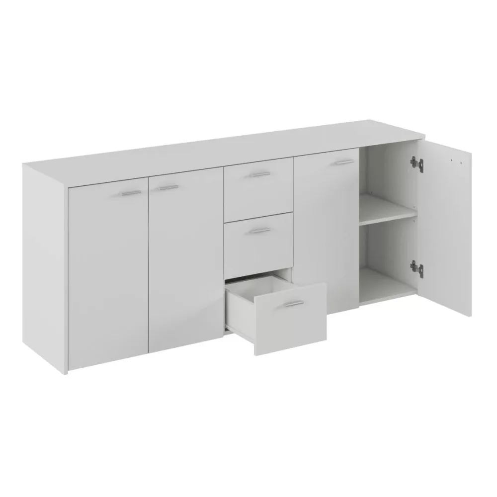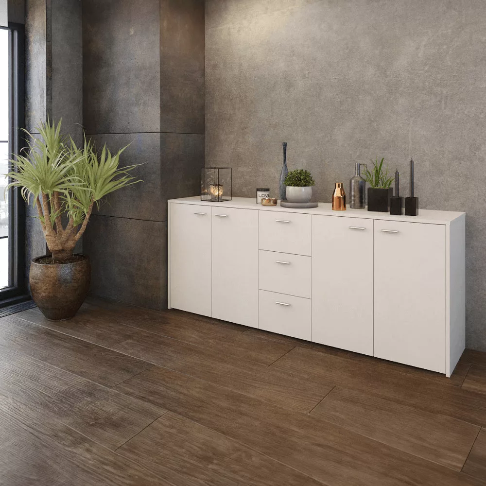 A gondos tervezésnek köszönhetően ez a bútor nem csupán tárolóhelyet biztosít, hanem esztétikai értéket is képvisel. A minimalista, fehér dizájn és az elegáns, ezüst színű műanyag fogantyúk könnyedén beilleszthetők a legtöbb modern és klasszikus enteriőrbe. A belső polcok és a fiókok ideálisak ruhák, dokumentumok vagy bármely más személyes tárgy diszkrét és rendezett tárolására, míg a komód teteje tökéletes felületet kínál dísztárgyak, könyvek vagy egy hangulatos lámpa elhelyezésére.