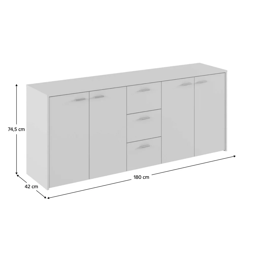 Gyakran érzed úgy, hogy otthonodban a helyhiány és a rendetlenség akadályozza a harmónia megteremtését? A HUGOS ruhás komód egy letisztult és funkcionális megoldást kínál erre a gyakori kihívásra. Ez a fehér színű, minőségi laminált DTD-ből készült tároló szekrény négy ajtóval és három tágas fiókkal segít rendet teremteni, legyen szó a hálószobáról, a nappaliról vagy akár az előszobáról.