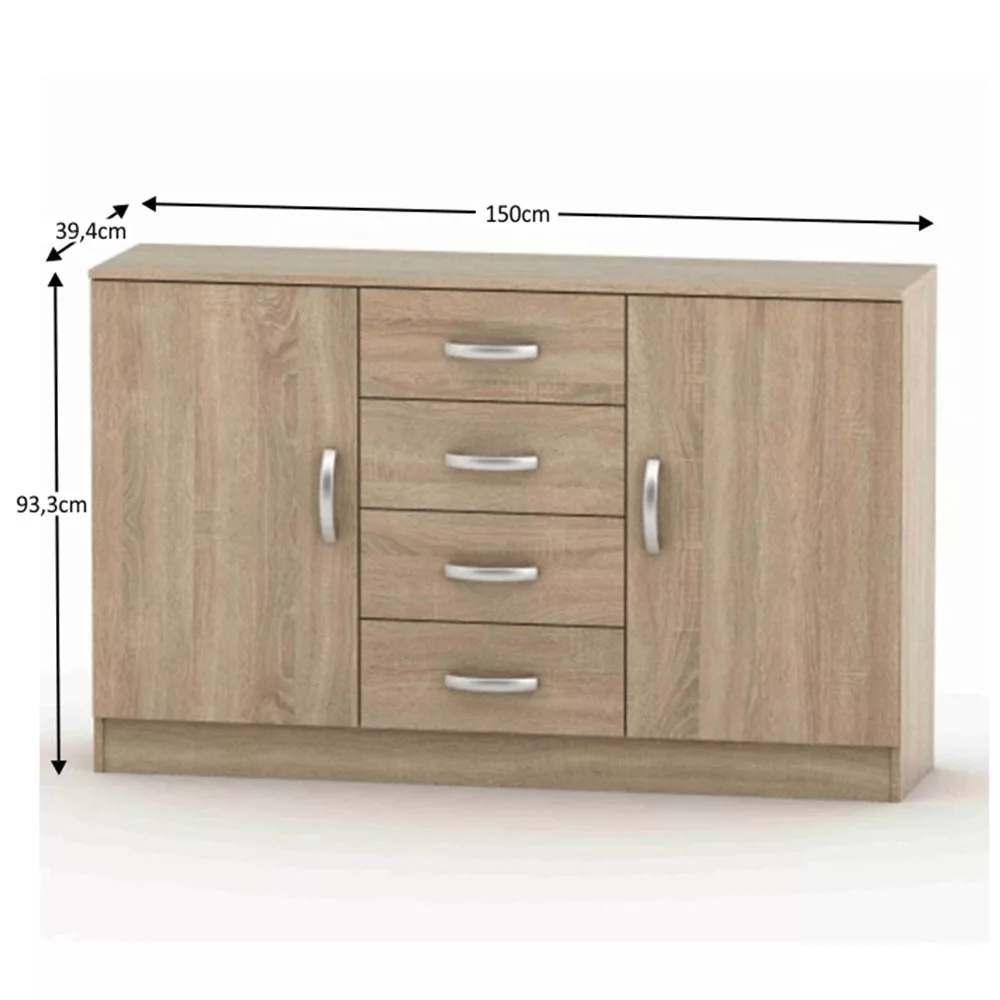 Ez a **ruhás komód** nem csupán egy bútordarab, hanem egy átgondolt tárolási megoldás, amely segít megszüntetni a rendetlenséget. A tágas belső terének köszönhetően minden ruhádnak, kiegészítődnek és személyes tárgyadnak könnyedén megtalálhatod a helyét. A négy fiók ideális a kisebb ruhadarabok, például fehérneműk vagy pólók rendszerezésére, míg a kétajtós, polcokkal ellátott szekrényrészben a nagyobb holmik is kényelmesen elférnek. A letisztult dizájn és a természetes színvilág könnyedén beilleszthető a legtöbb hálószobai enteriőrbe, hozzájárulva a nyugodt és kiegyensúlyozott atmoszféra megteremtéséhez.