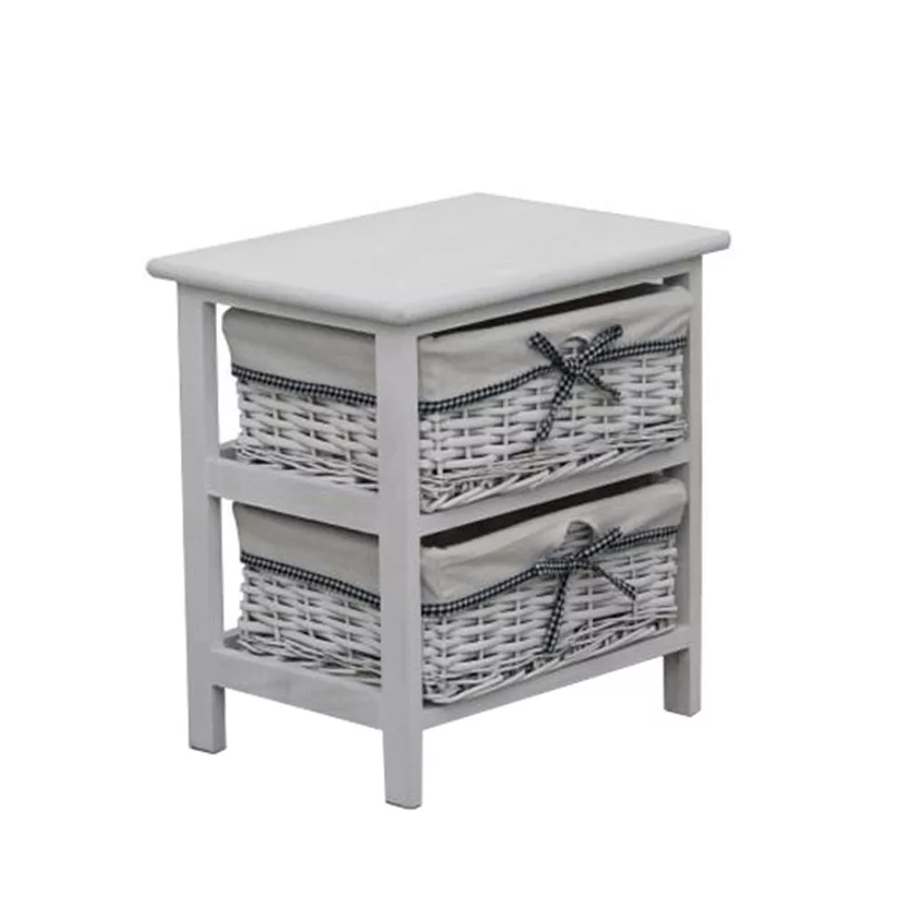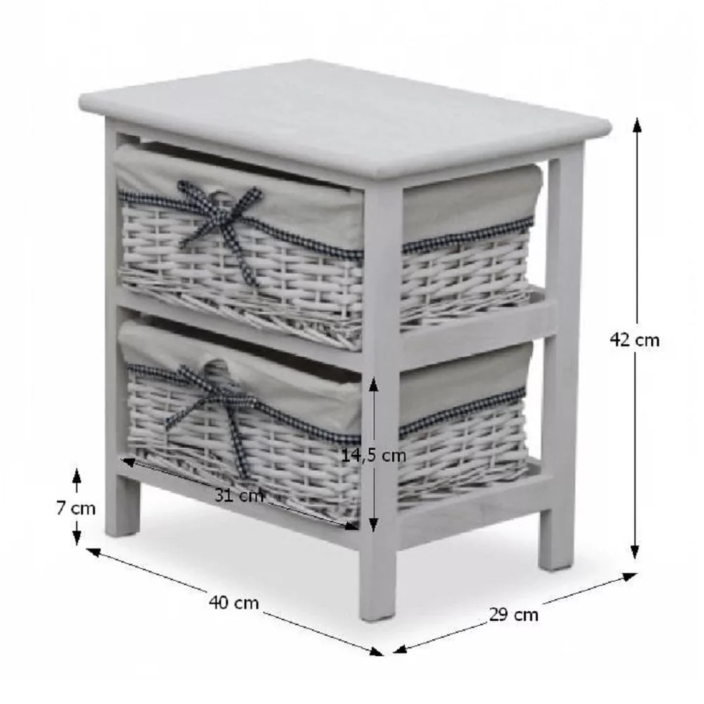 - Kialakítás: Stabil keret 2 darab fonott kosárral