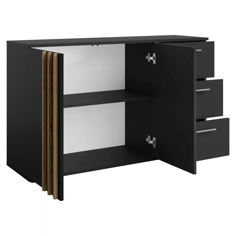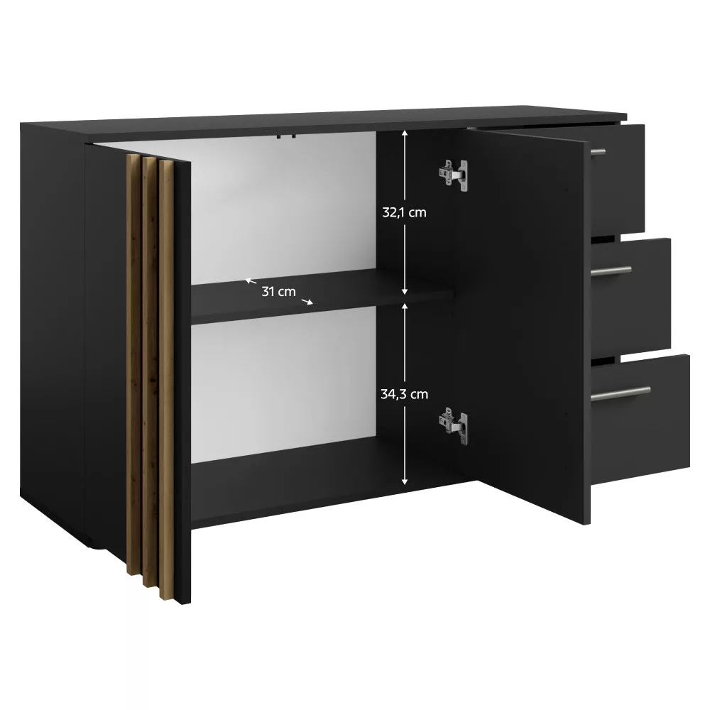 Egy jól megválasztott bútor nem csupán tárolóhelyet biztosít, hanem otthonod stílusát és hangulatát is meghatározza. Ismerd meg az TOLIS TYP 3 komódot, amely a modern dizájn és a praktikum tökéletes ötvözete. Ez a fekete és artisan tölgy színkombinációban készült, laminált DTD és MDF anyagú tároló szekrény ideális választás, ha egy elegáns, mégis funkcionális megoldást keresel. Kialakítása – két ajtó, egy belső polc és három fiók – gondoskodik róla, hogy minden kisebb tárgyadnak és dekorációdnak meglegyen a helye.