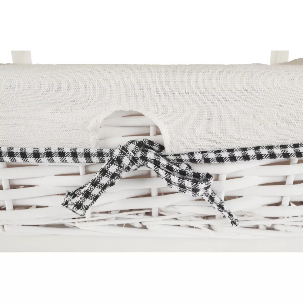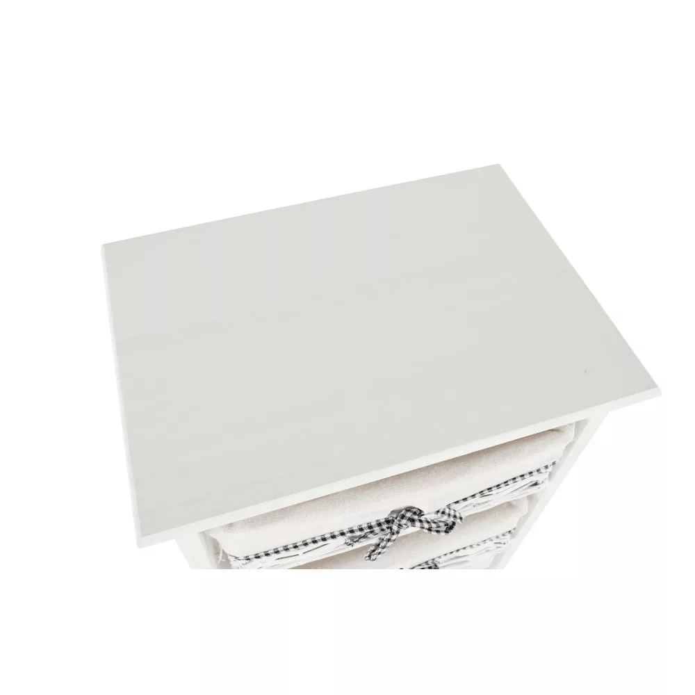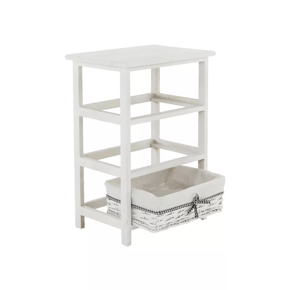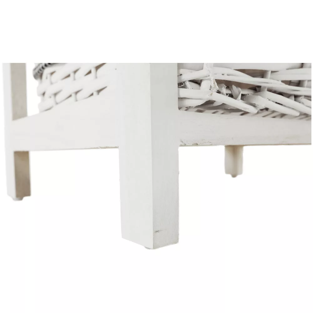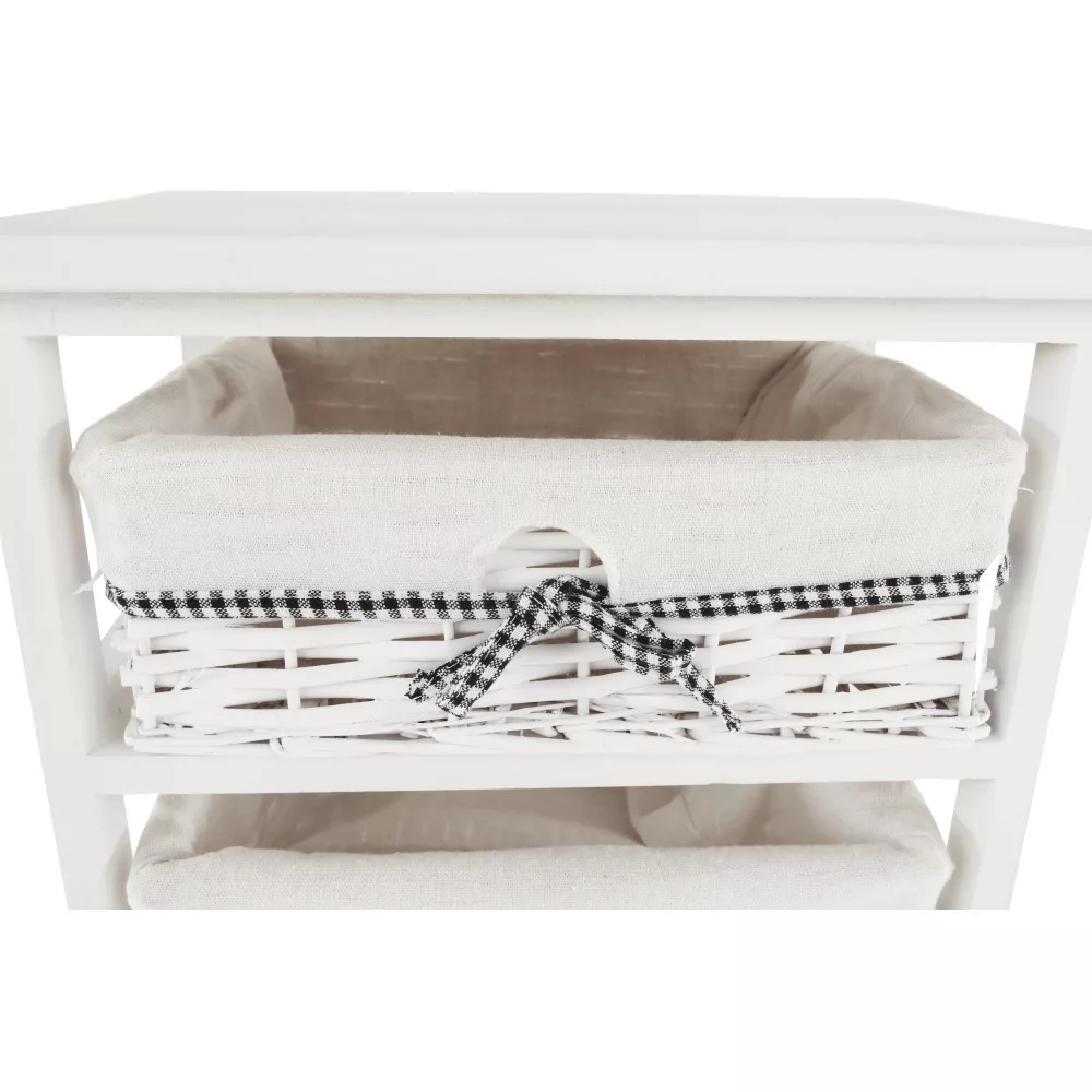 A stabil faszerkezet hosszú távú megbízhatóságot garantál, míg a három tágas, vesszőből font kosár ideális helyet biztosít a különböző tárgyak átlátható rendszerezésére. Kialakításának köszönhetően tökéletes választás az előszobába sálak és kesztyűk tárolására, a fürdőszobába a kozmetikumok és törölközők számára, vagy a hálószobába, ahol akár ruhás komód funkciót is betölthet a kisebb ruhadarabok, kiegészítők számára.