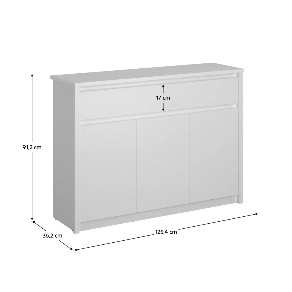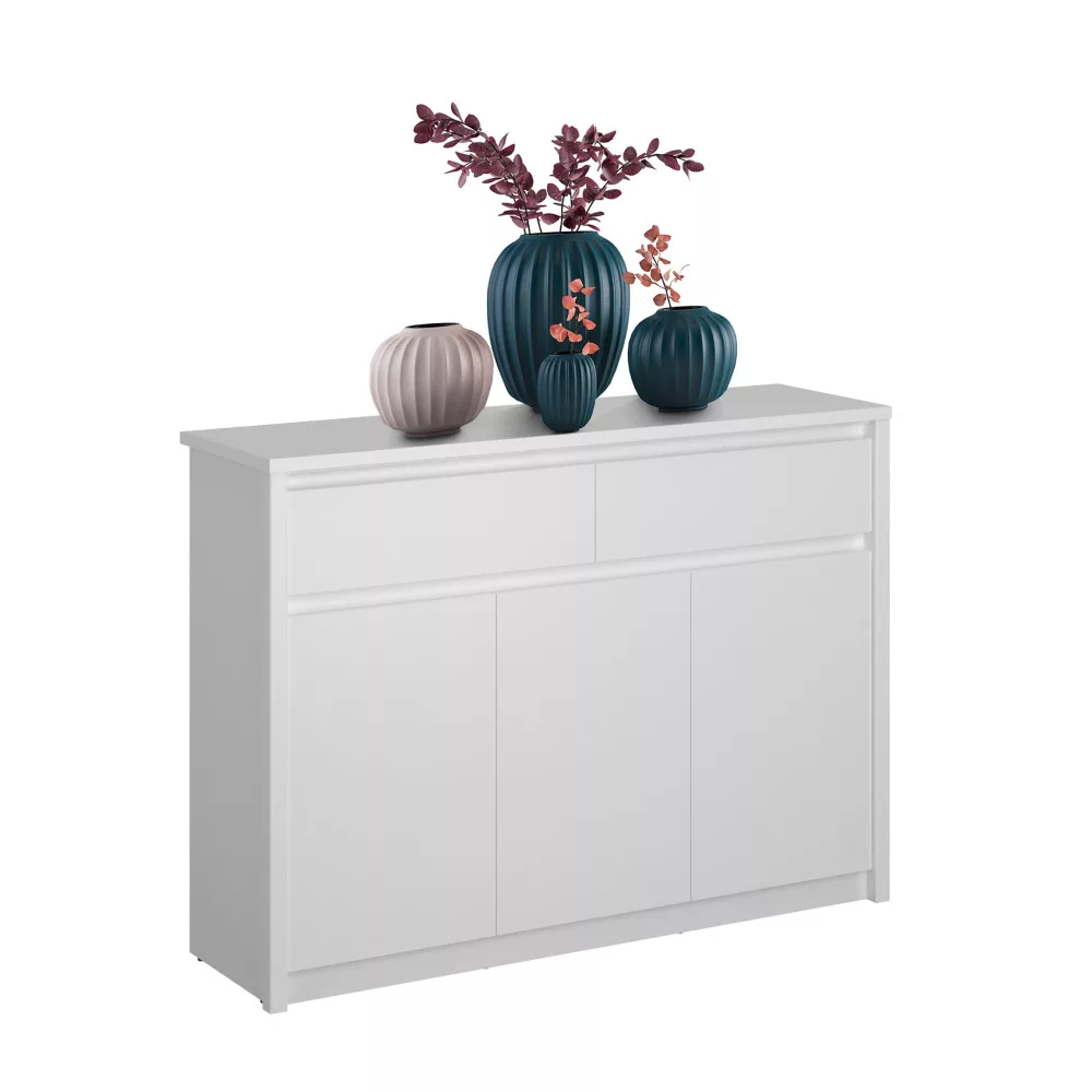 A harmonikus és rendezett otthoni környezet megteremtése gyakran a megfelelő tárolási megoldások kiválasztásánál kezdődik. Az ERODIN bútorkészlet semleges fehér színével és letisztult formavilágával pontosan ezt a célt szolgálja. Ez a fiókos szekrény a minimalista dizájn és a funkcionális kialakítás tökéletes ötvözete. A fogantyú nélküli nyitás és a ragyogó fehér felület eleganciát és modernitást sugároz, miközben tágasabbá és világosabbá teszi a teret.