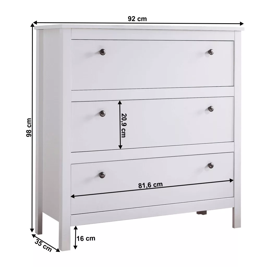 - Kialakítás: Három tágas fiókkal rendelkezik, melyek mérete egyenként 81,7x20,9 cm. A 16 cm magas lábak eleganciát kölcsönöznek a bútornak és megkönnyítik a takarítást.