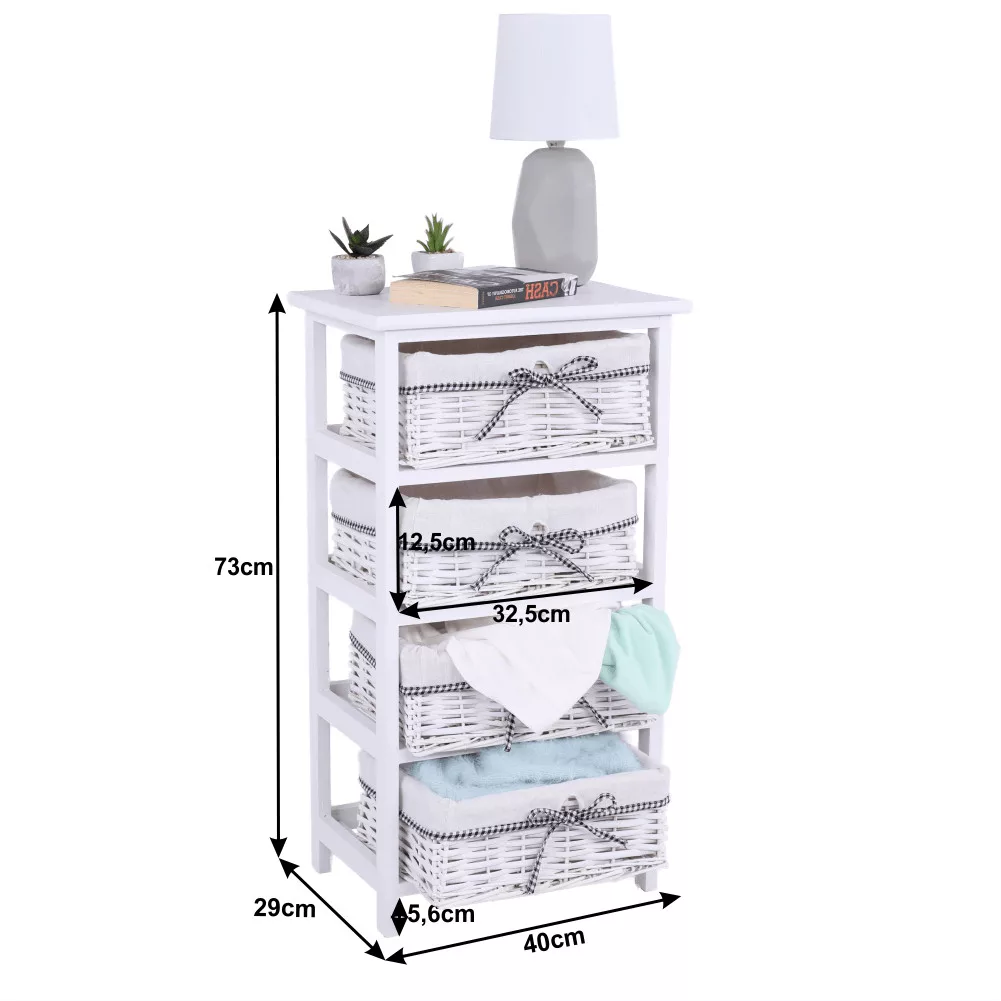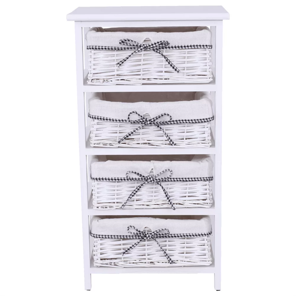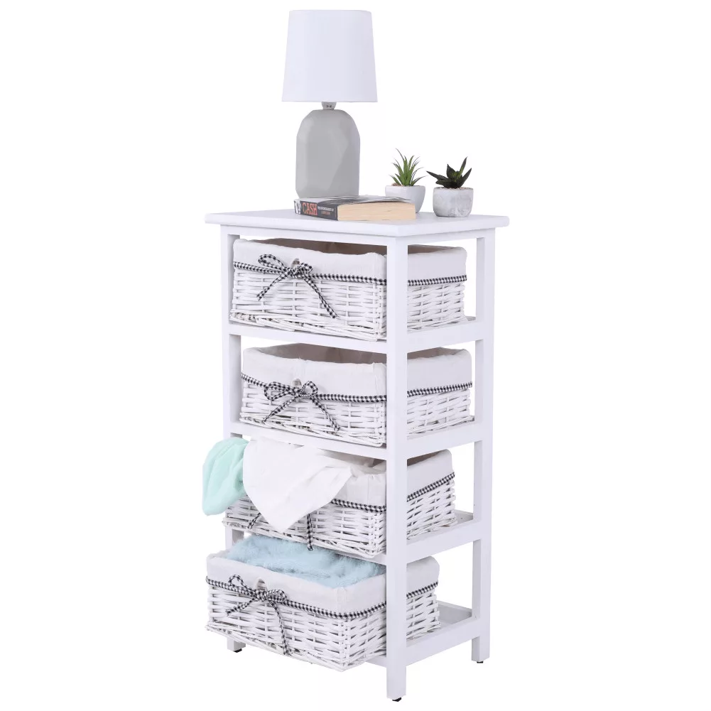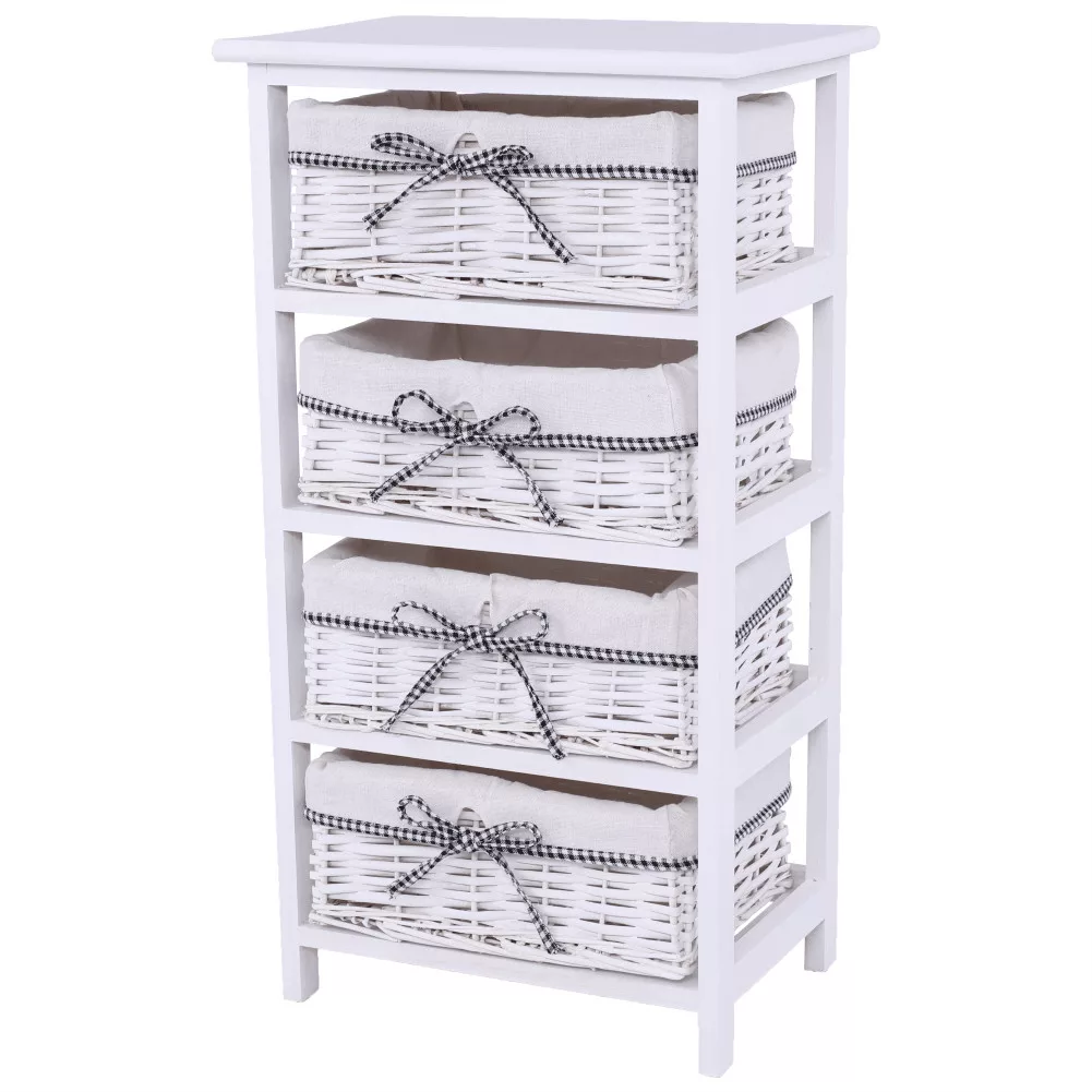 - Felépítés: Stabil keret 4 darab fonott kosárral