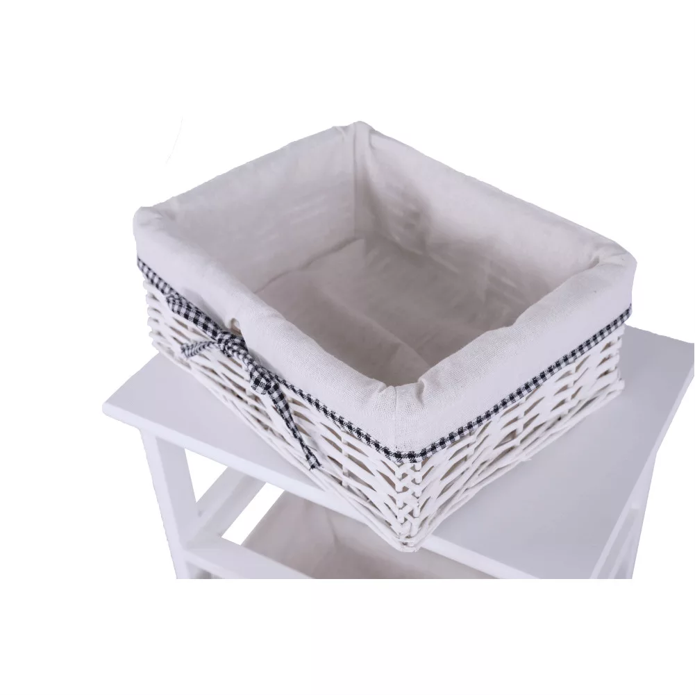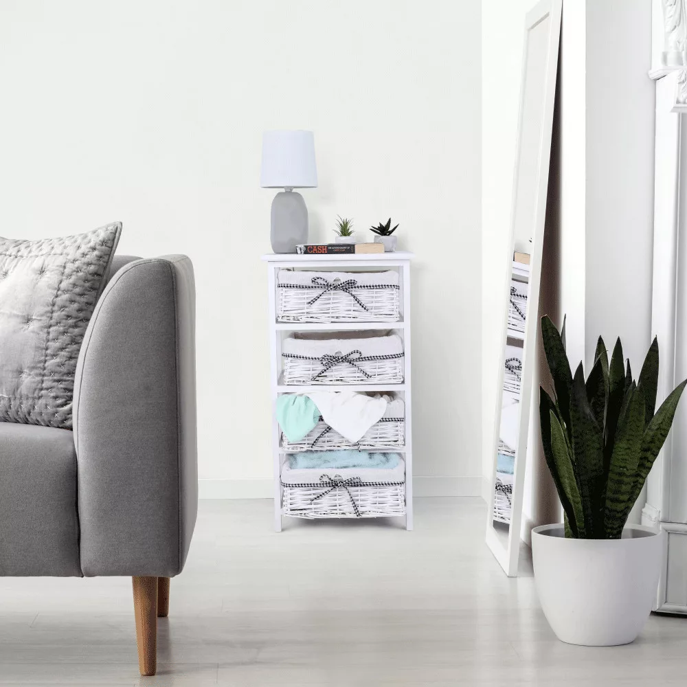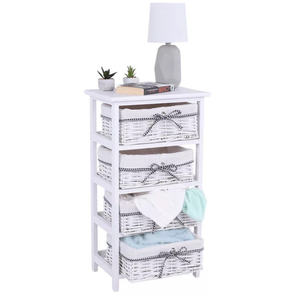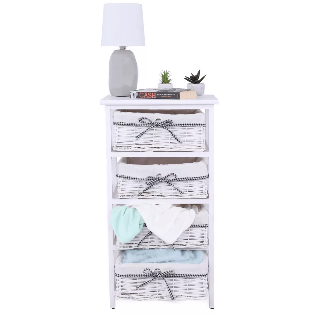 - Felépítés: Stabil keret 4 darab fonott kosárral
