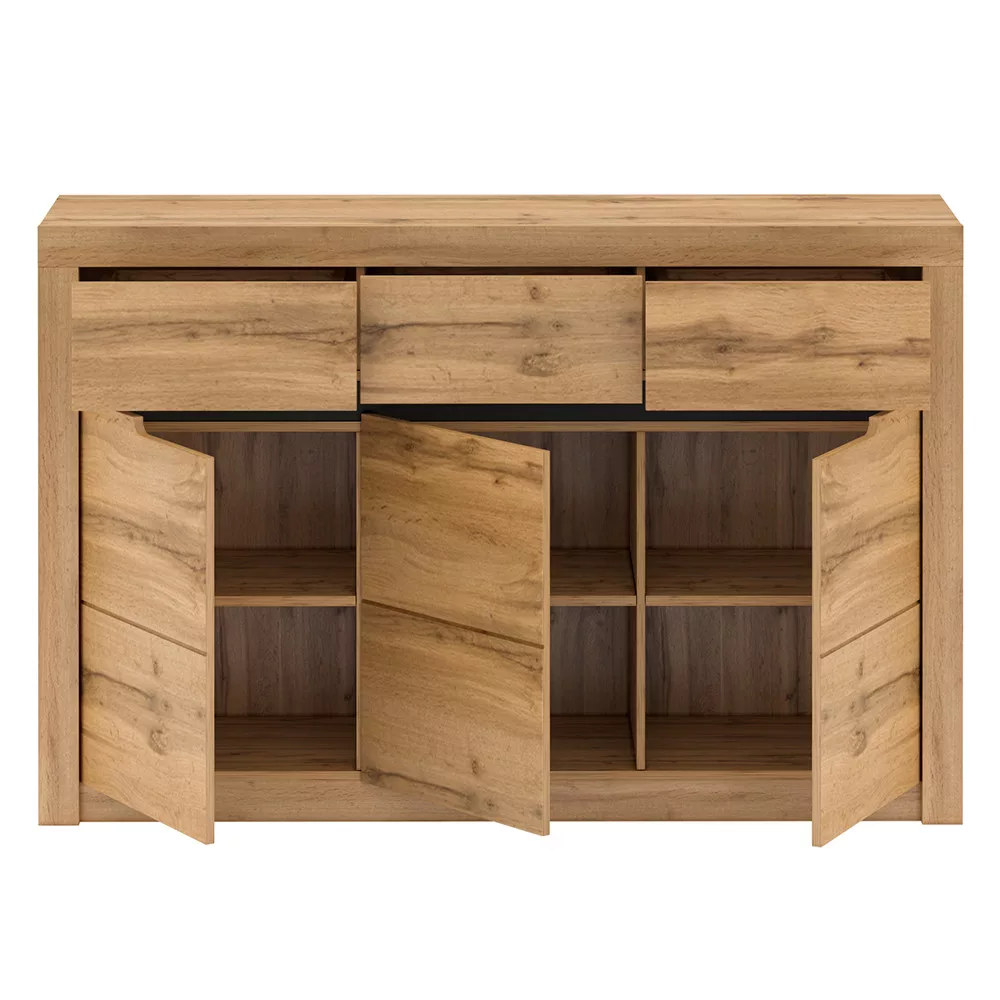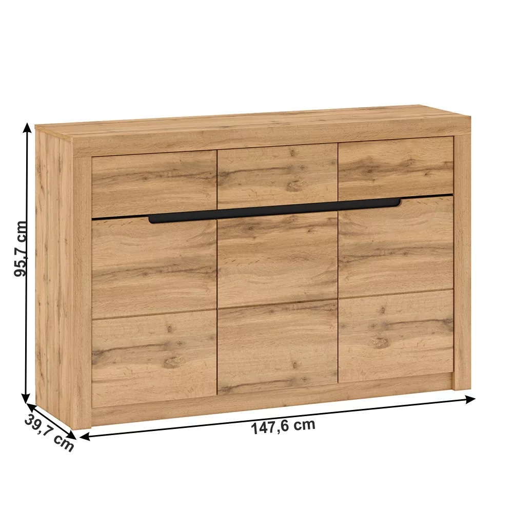 Ismerd meg a TORONTA elemes bútort, amely a luxust és a kényelmet hozza el nappalidba vagy étkeződbe. Ez az egyedi tároló szekrény az innovatív dizájn és az attraktív megjelenés tökéletes ötvözete. A bútortest 16 mm vastagságú laminált DTD lapból, míg a modern megjelenésű ajtók 19 mm vastag, fóliázott MDF-ből készültek. A domináns és meleg wotan tölgy színvilág minden teret ragyogóvá és otthonossá varázsol, megteremtve a nyugalom szigetét otthonodban.