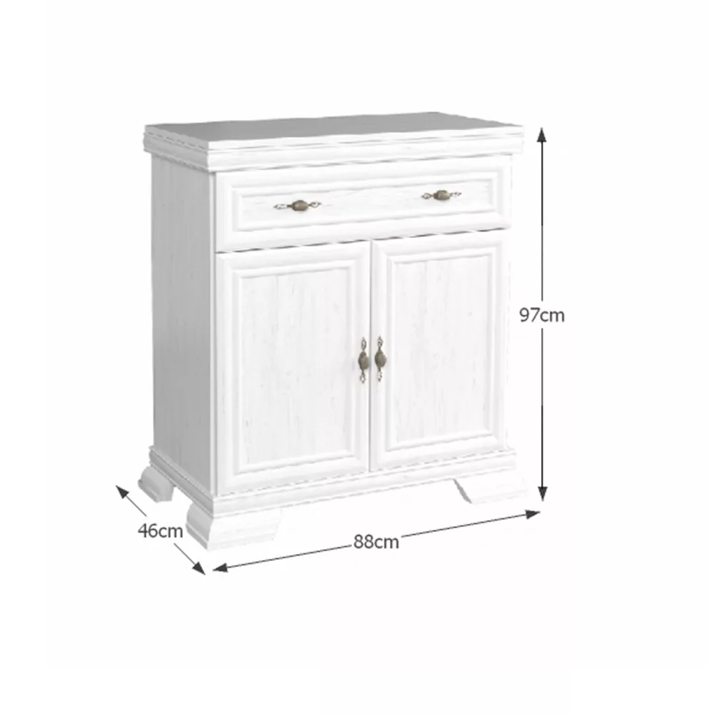 A vidéki és rusztikus stílus kedvelőjeként biztosan értékelni fogod, hogyan képes egyetlen bútordarab történetet mesélni és lelket adni a beltérnek. Ez a ruhás komód a gondosan megtervezett részletek, mint a finom díszlécek és a karakteres fém fogantyúk összhangjával teremt tökéletes idillt. A praktikus kialakításnak köszönhetően – egy tágas fiókkal és ajtós szekrényrésszel – ideális tároló szekrény a hálószobába, nappaliba vagy akár az előszobába is, segítve a rendszerezett és mégis hangulatos környezet kialakítását.