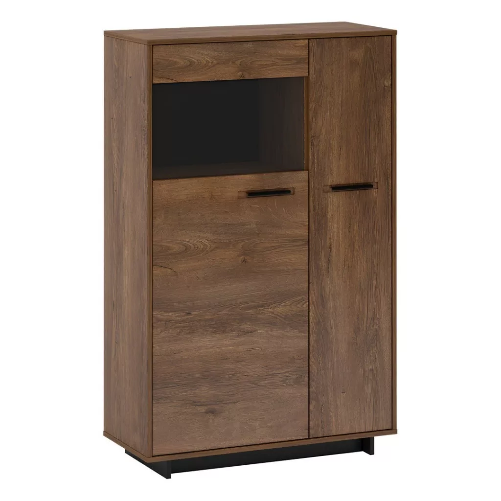 Egy otthon berendezése során gyakran merül fel a kérdés, hogyan teremthetjük meg a tökéletes egyensúlyt a modern, letisztult formák és az időtlen, meleg hangulat között. A DELIS nappali elemes rendszer pontosan ezt a harmóniát kínálja, képviselve a bútortervezés legújabb, minőségközpontú irányvonalát. A bolzano tölgy és fekete színkombináció, a laminált DTD váz és a fóliázott MDF frontok, valamint a precíz kidolgozás teszik ezt az üveges szekrényt egyedülállóvá. Első pillantásra letisztult és egyszerű, de a valódi érték a részletekben rejlik, amelyek egy magasabb szintre emelik a bútordarabot.