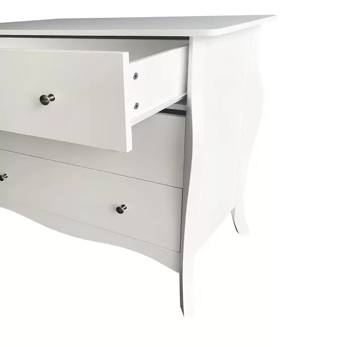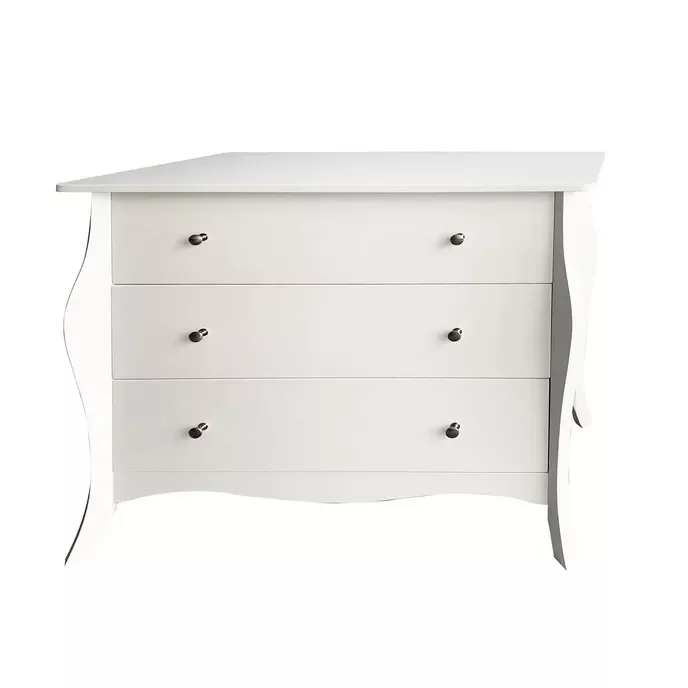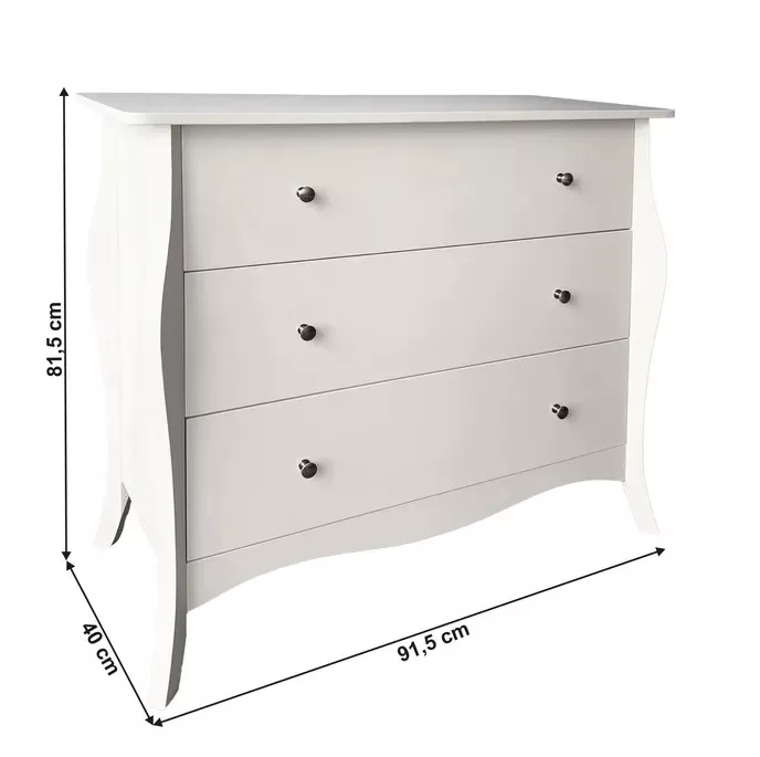 Egyedi és stílusos otthon megteremtésekor minden részlet számít. Gyakran egyetlen jól megválasztott bútordarab is képes meghatározni egy szoba teljes hangulatát, miközben megoldást kínál a tárolási kihívásokra. Az ELIANA komód egy olyan darab, amely nem csupán tárolási funkciót lát el, hanem karaktert is ad a térnek. A romantikus-barokk stílusú, időtlen fehér színben pompázó bútordarab MDF-ből készült, és három tágas, egyforma méretű fiókkal kínál rendezett tárolási lehetőséget.