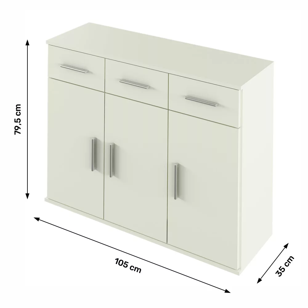 Gyakran érezzük úgy, hogy a felhalmozódott tárgyak elveszik az otthonunk harmóniáját, és a rend fenntartása egyre nagyobb kihívást jelent. A RESITA TYPE 3 komód egy olyan átgondolt bútordarab, amely a modern dizájnt a kivételes praktikummal ötvözi. Ez a letisztult, fehér színben pompázó, háromajtós és három fiókos tároló szekrény diszkrét eleganciájával válik bármely helyiség központi, mégis funkcionális elemévé.