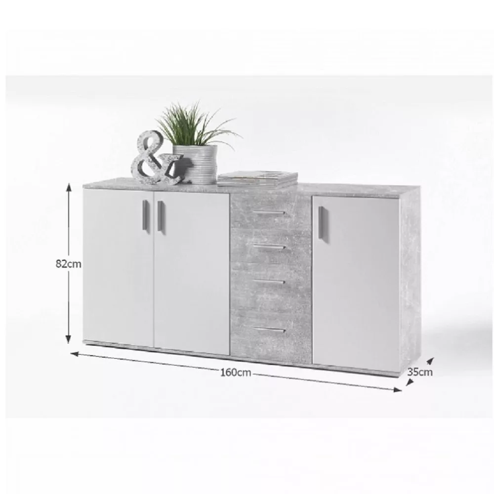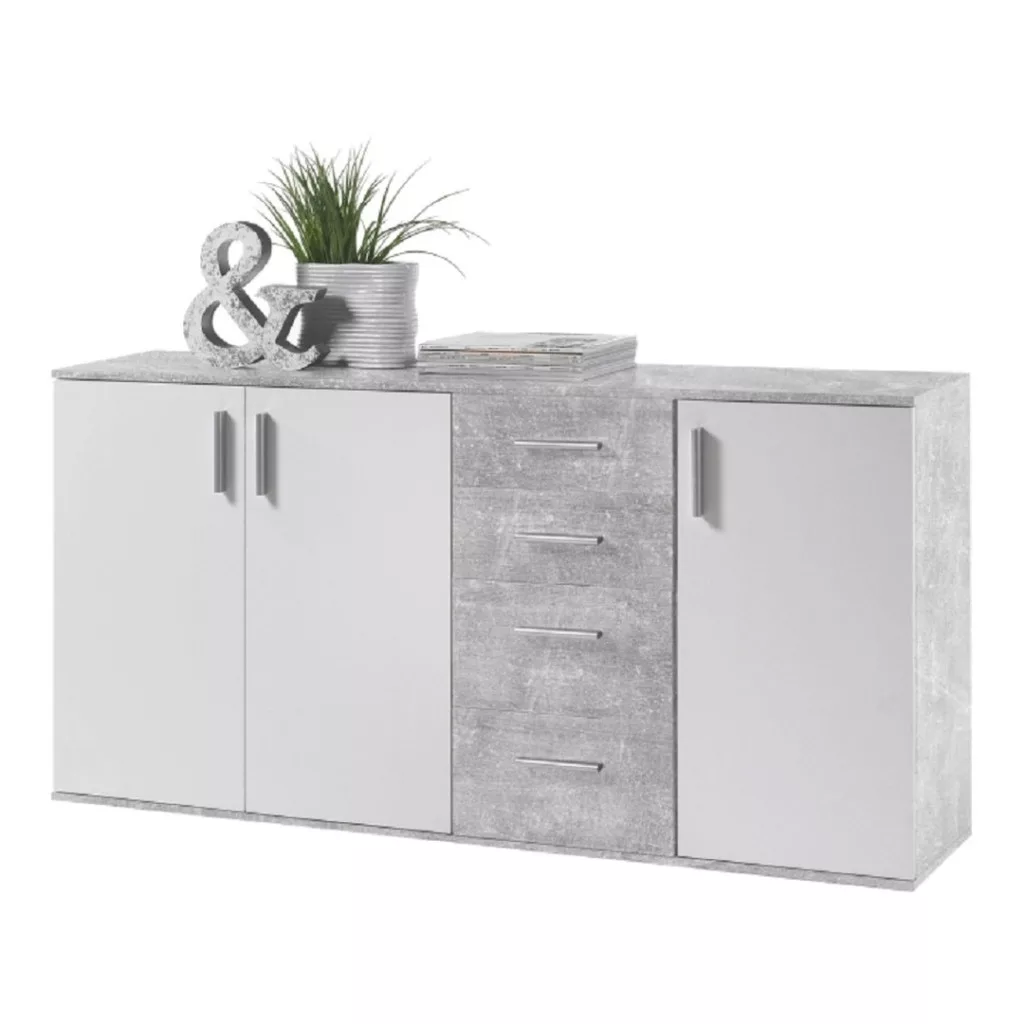 Ismerd meg a POPPY 3 komódot, amely a modern design és a funkcionális tárolás tökéletes ötvözete. Ez a háromajtós, négy fiókos kialakítású bútordarab magas minőségű laminált DTD bútorlapból készül, divatos fehér és beton színkombinációban, amely letisztult eleganciát kölcsönöz bármely térnek. Ideális választás, ha egy sokoldalú tároló szekrényt keresel, amely egyaránt megállja a helyét a nappaliban, a hálószobában, de akár egy tágasabb előszobában is.