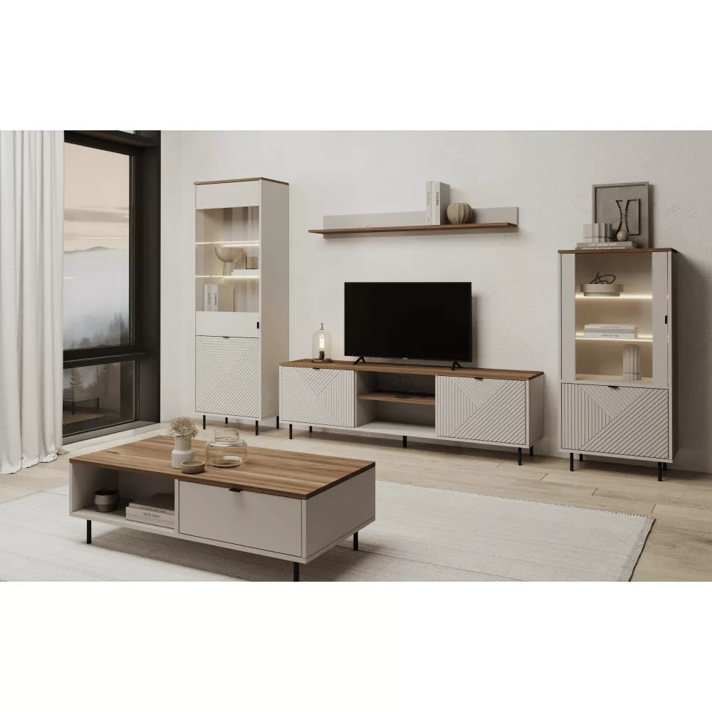Az EYCO elemes bútorkészletet pontosan erre a kihívásra terveztük. Ez a tároló szekrény a kasmír és castello tölgy színkombinációjával modern, mégis lágy hatást kelt, miközben a fekete fém lábak és fogantyúk elegáns kontrasztot adnak. A bútorok teste strapabíró, laminált DTD-ből, a dekoratív ajtók pedig fóliázott MDF-ből készülnek, melyeket ABS élek védenek a mindennapi használat során keletkező sérülésektől.