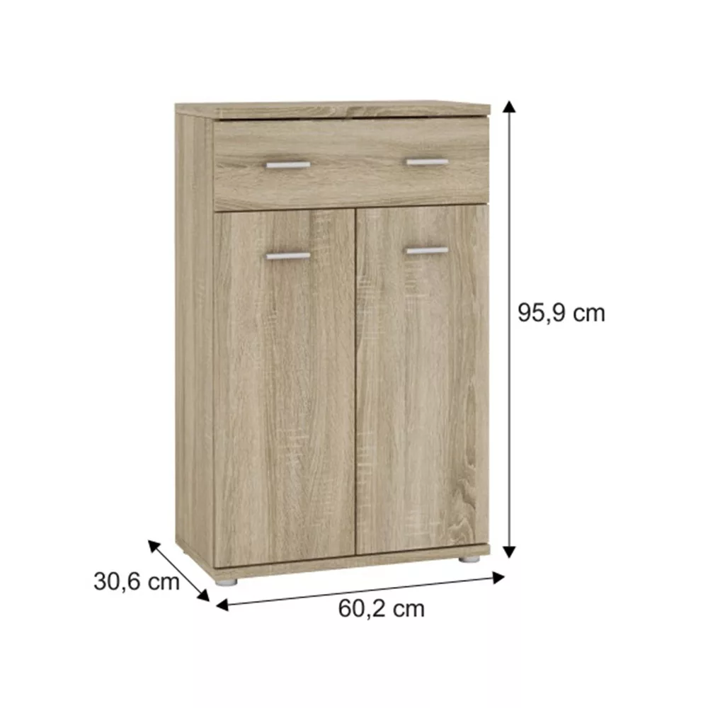 Az előszoba otthonod névjegye, az első benyomás tere, amely összeköti a külvilágot a belső harmóniával. A MARIO NEW fiókos szekrény sonoma tölgy színben praktikus és esztétikus megoldást kínál, hogy ez a fontos helyiség mindig rendezett és hívogató legyen. 60,2x30,6x95,9 cm-es méretével, egy fiókkal és két polccal segít a rendszerezésben anélkül, hogy túlzsúfolná a teret.
