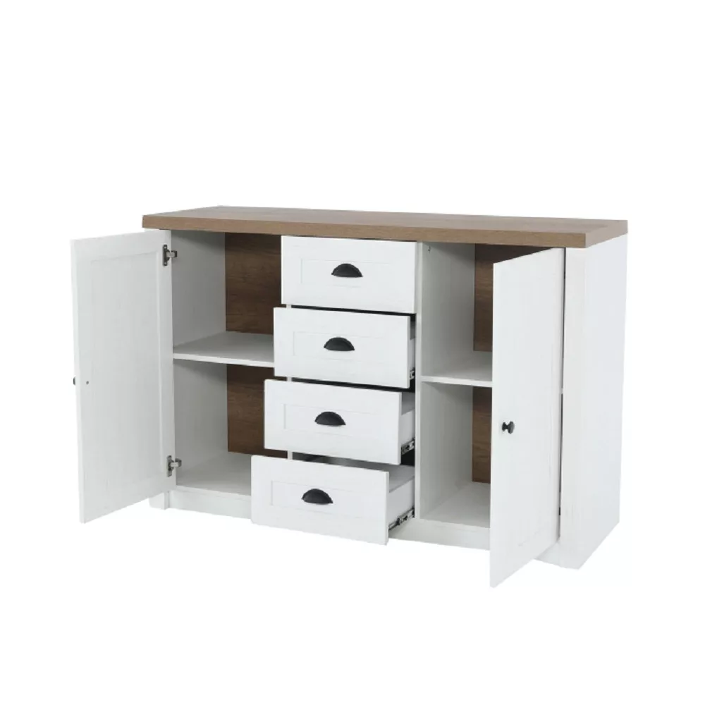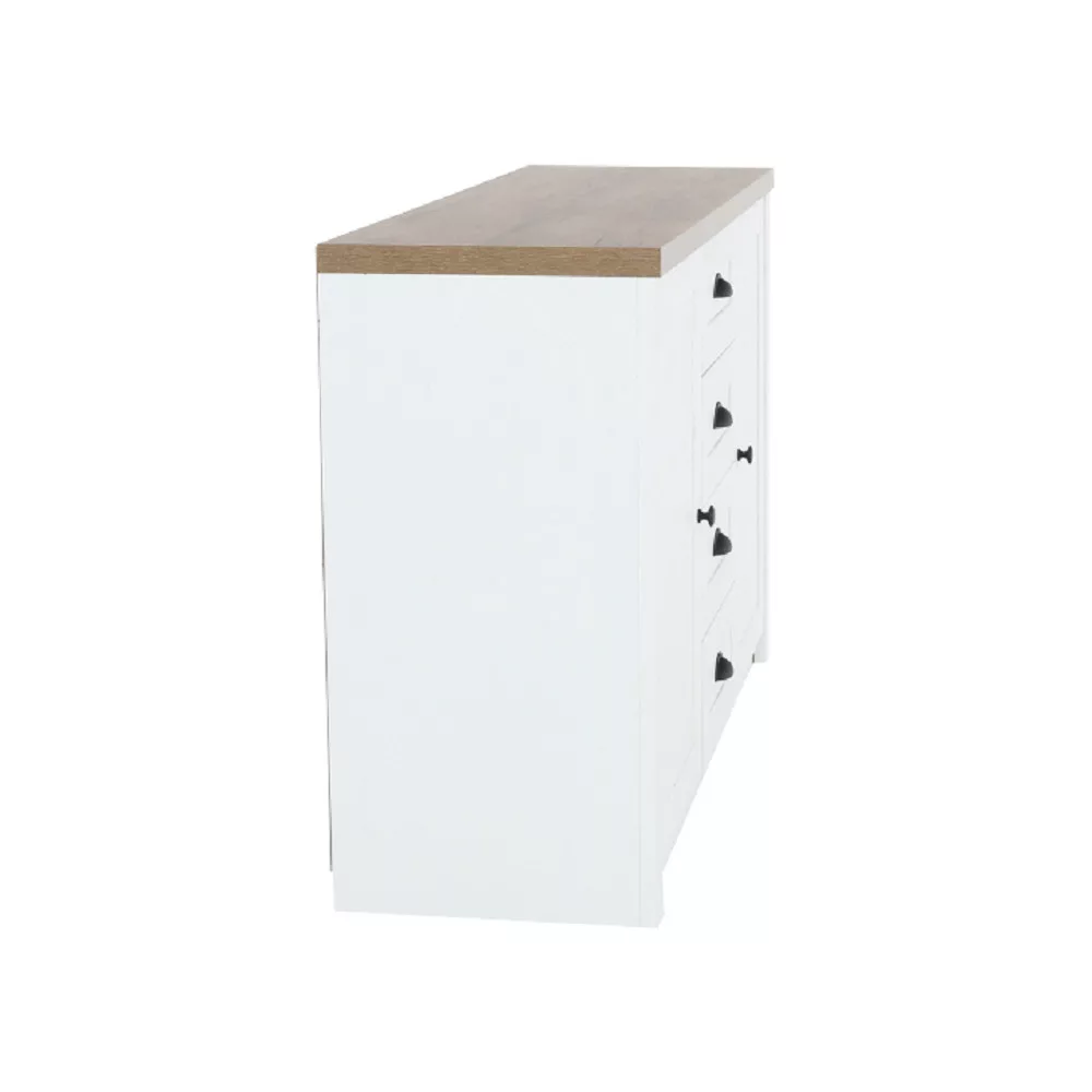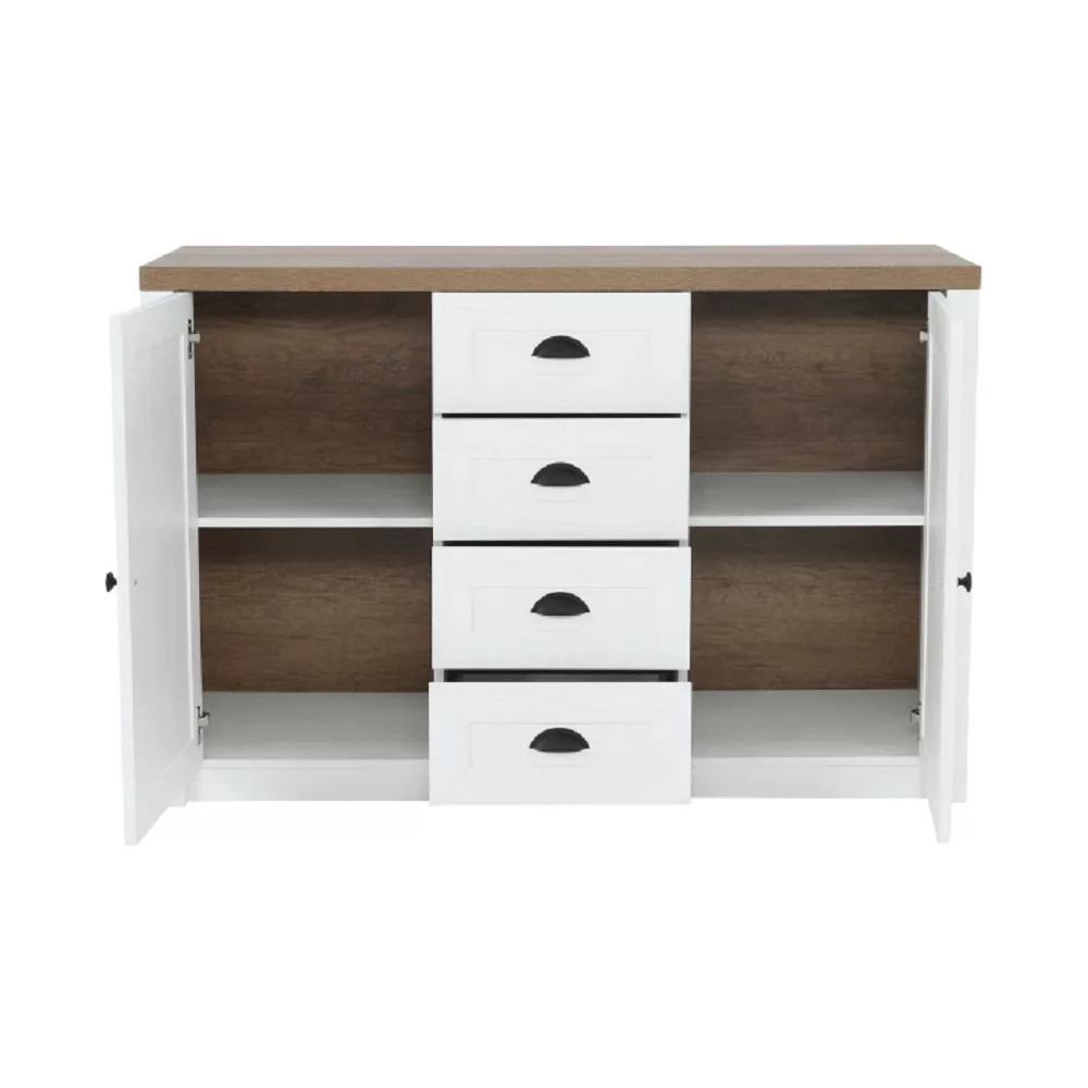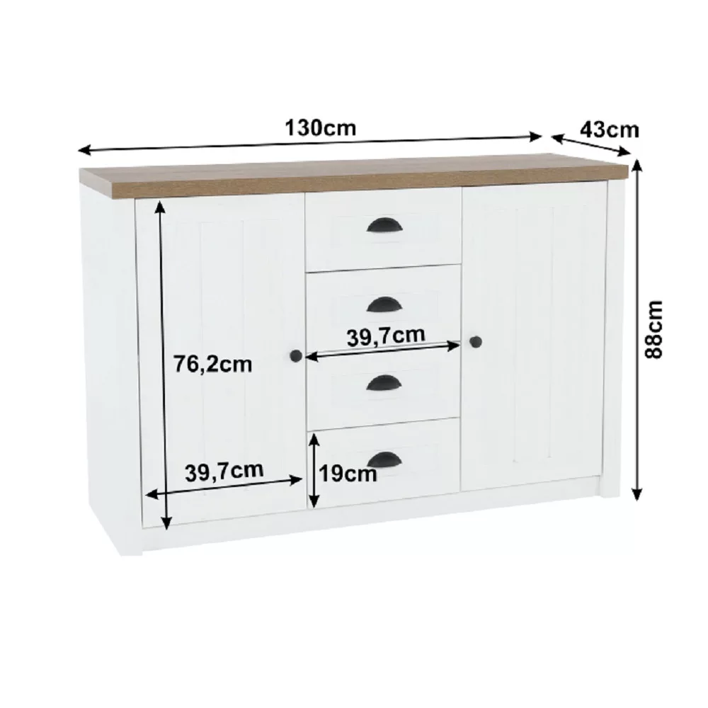 A mindennapi rohanásban mindannyian vágyunk egy otthonra, ami a nyugalom szigete. Engedd meg, hogy bemutassuk neked ezt a provence-i stílusú fiókos szekrényt, amely Dél-Franciaország romantikus báját hozza el otthonodba. A sosna andersen és tölgy lefkas színkombináció világos, légies hatást kelt, míg a 130 cm-es szélessége bőséges tárolóhelyet biztosít, hozzájárulva a rendezett környezet megteremtéséhez.