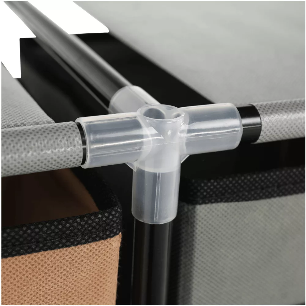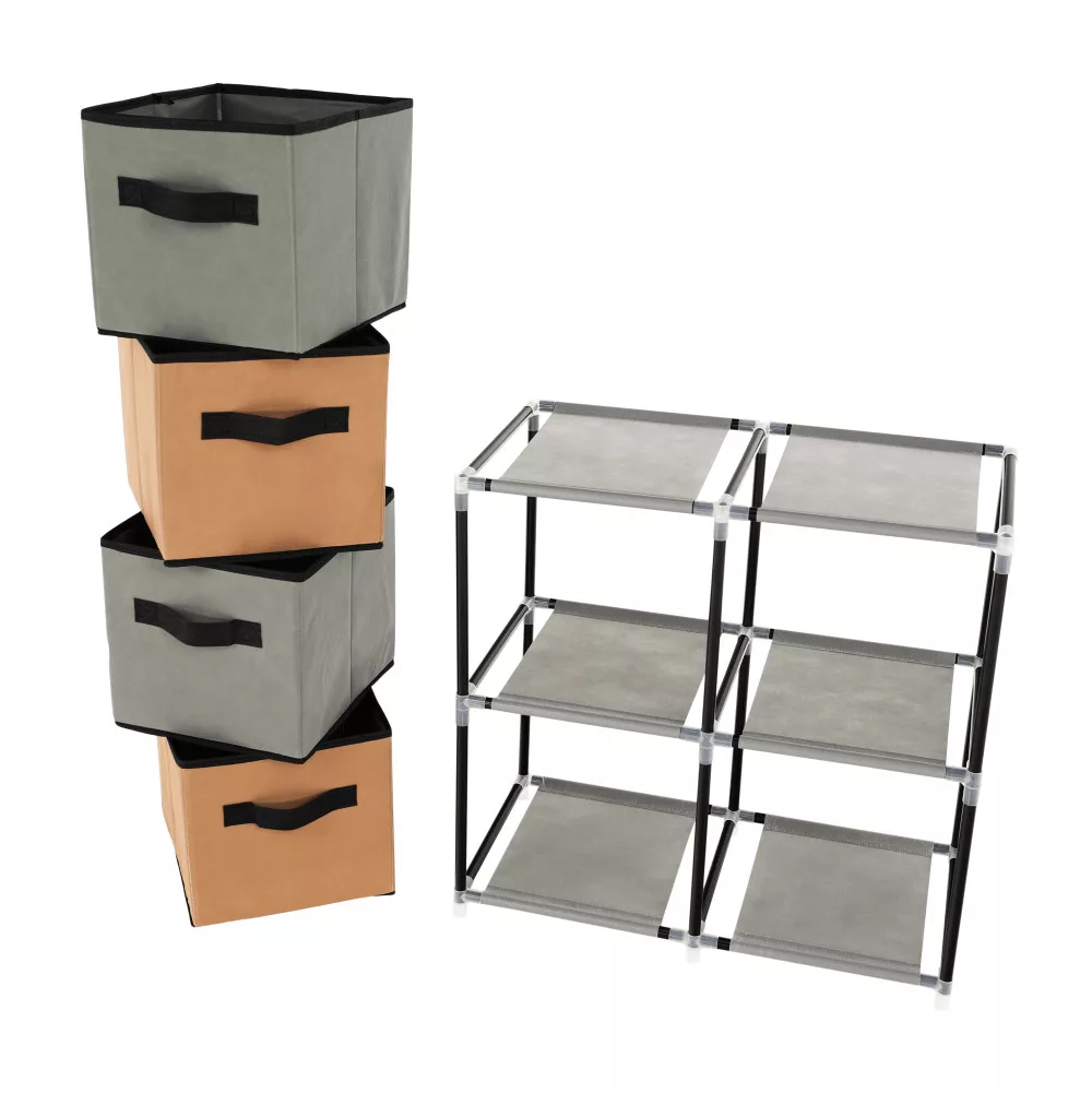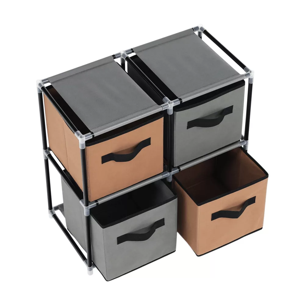 A tervezés során a sokoldalúság volt a fő szempont. A fekete fém váz, a műanyag kötőelemekkel kombinálva, egy stabil alapot biztosít a négy, praktikus fogantyúval ellátott szövet fióknak. A barna és szürke színek váltakozása játékos, mégis elegáns megjelenést kölcsönöz a bútornak, így könnyedén beilleszthető a nappali, a hálószoba, a gyerekszoba vagy akár az előszoba enteriőrjébe is. Az igazi különlegessége azonban a modularitásában rejlik: a fiókok elrendezését Te magad alakíthatod ki, így a komód mindig az aktuális tárolási szükségleteidhez igazodik. A szereléshez nincs szükség szakértelemre, így gyorsan és egyszerűen élvezheted egy rendezettebb otthon előnyeit.