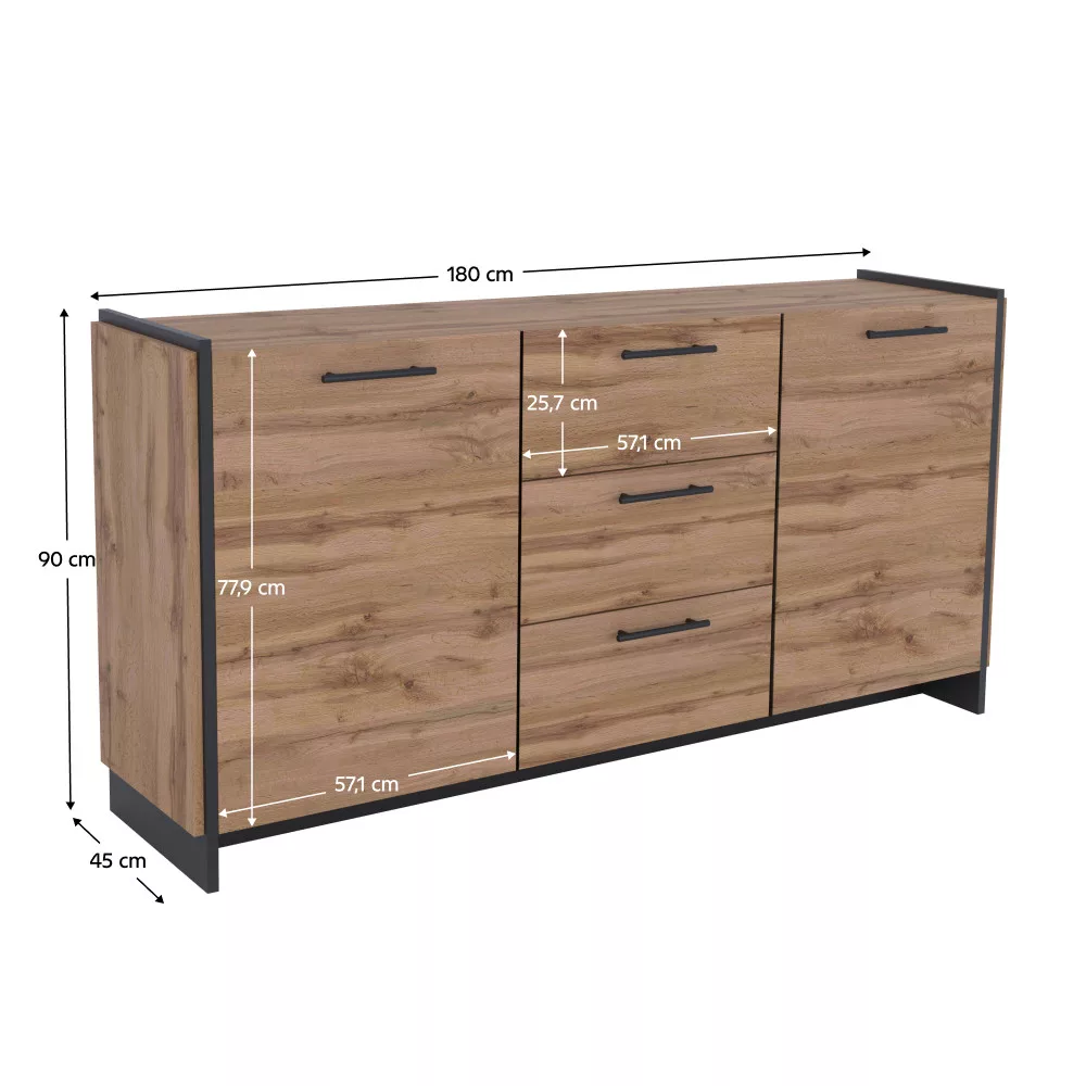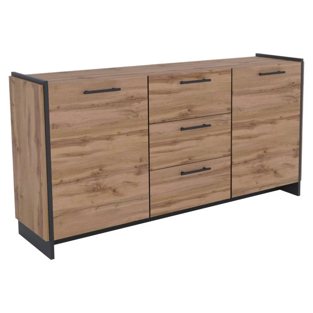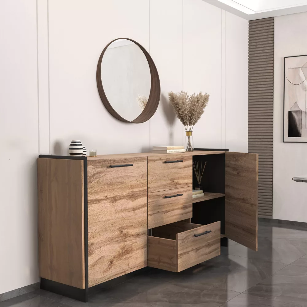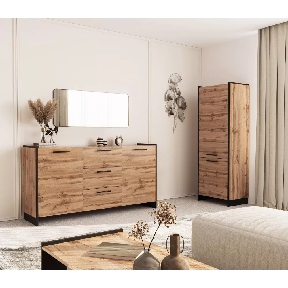 AMONI wotan tölgy és fekete fiókos szekrény: Stílus és rendszerezettség