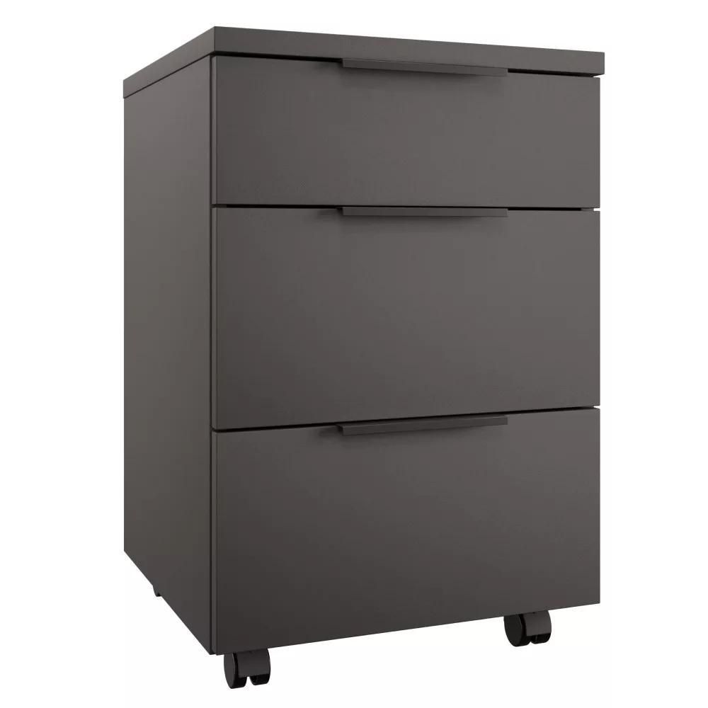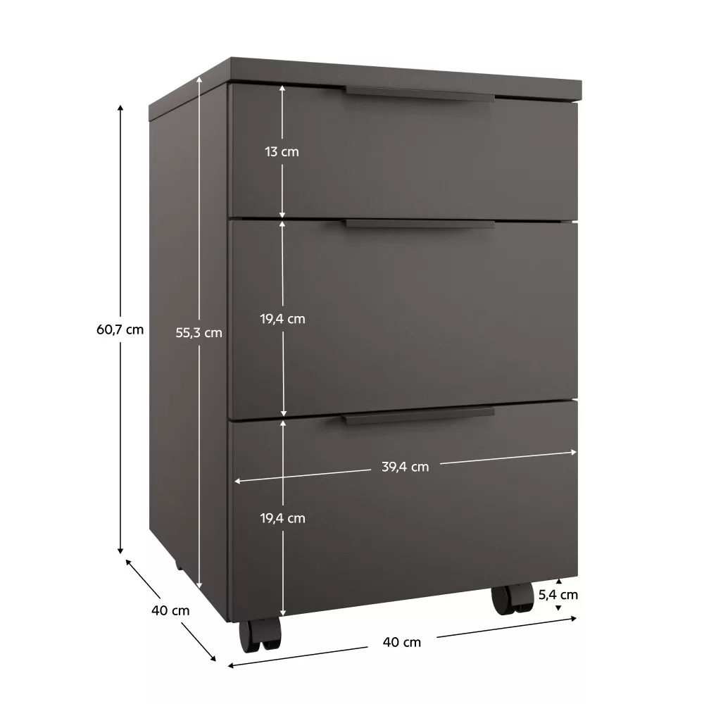 A dizájn nem öncélú, hanem a funkcionalitást és a professzionális légkört szolgálja. Az antracit sötét eleganciája és a cremona tölgy meleg, természetes hatása harmonikus egységet alkot. Ez a színpár modern, letisztult, mégis barátságos atmoszférát teremt, amely könnyedén illeszkedik a legtöbb irodai stílushoz. A fiókokat letisztult, fekete fém fogantyúk díszítik, amelyek nemcsak esztétikusak, de kényelmes és biztos fogást is garantálnak.