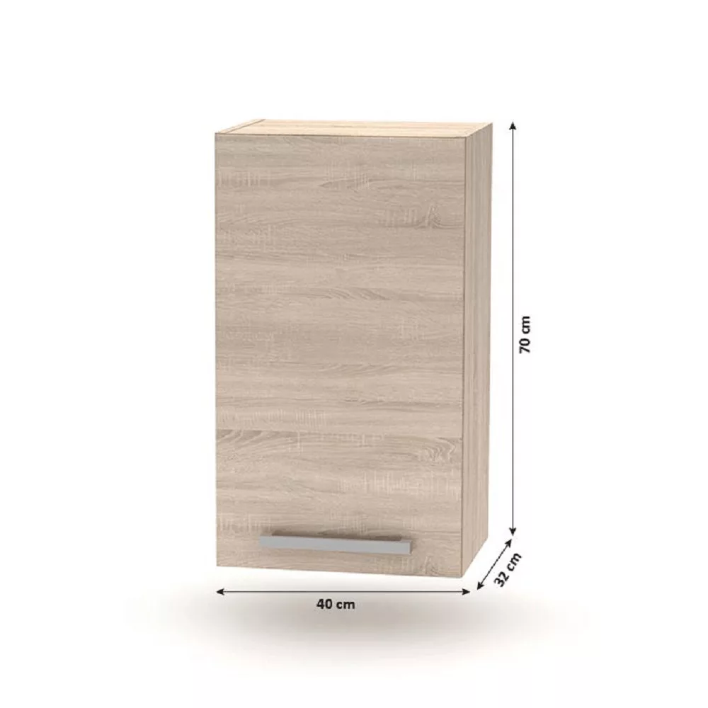 - Egyajtós szekrény (005-OH): 40x32x70 cm, két belső polccal, jobbos nyitással