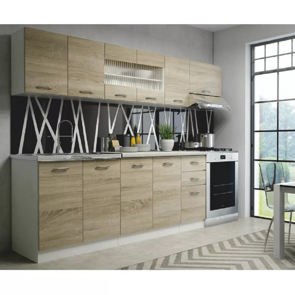 A konyha otthonod szíve, a közös étkezések és a meghitt beszélgetések színtere, ezért kialakítása különös figyelmet érdemel. A PROMO széria konyhabútor elegáns megjelenésével és praktikus elrendezésével tökéletes alapot teremt egy funkcionális és barátságos konyhai környezethez. Ez a konyhablokk modern, mégis szolid hangulatot kölcsönöz a helyiségnek, köszönhetően a magas minőségű laminált DTD bútorlapnak, a letisztult fehér színű korpusznak és a természetes hatású sonoma tölgy ajtóknak.