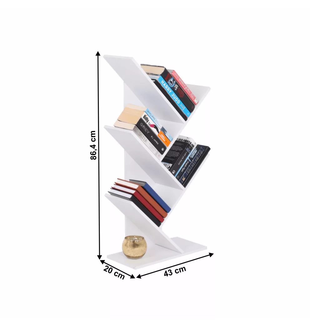 A minőségi kidolgozás és a praktikus kialakítás biztosítja, hogy ez a bútordarab hosszú távon szolgálja kényelmedet. Modern megjelenése letisztult hátteret biztosít kedvenc könyveidnek, dísztárgyaidnak vagy akár a családi fotóknak. A keskeny, létrapolc jellegű kialakításának köszönhetően kisebb terekben is kiválóan elhelyezhető, anélkül, hogy zsúfolttá tenné a környezetet. A nagyobb stabilitás érdekében javasoljuk az állvány falhoz rögzítését, így garantálva a biztonságos használatot.