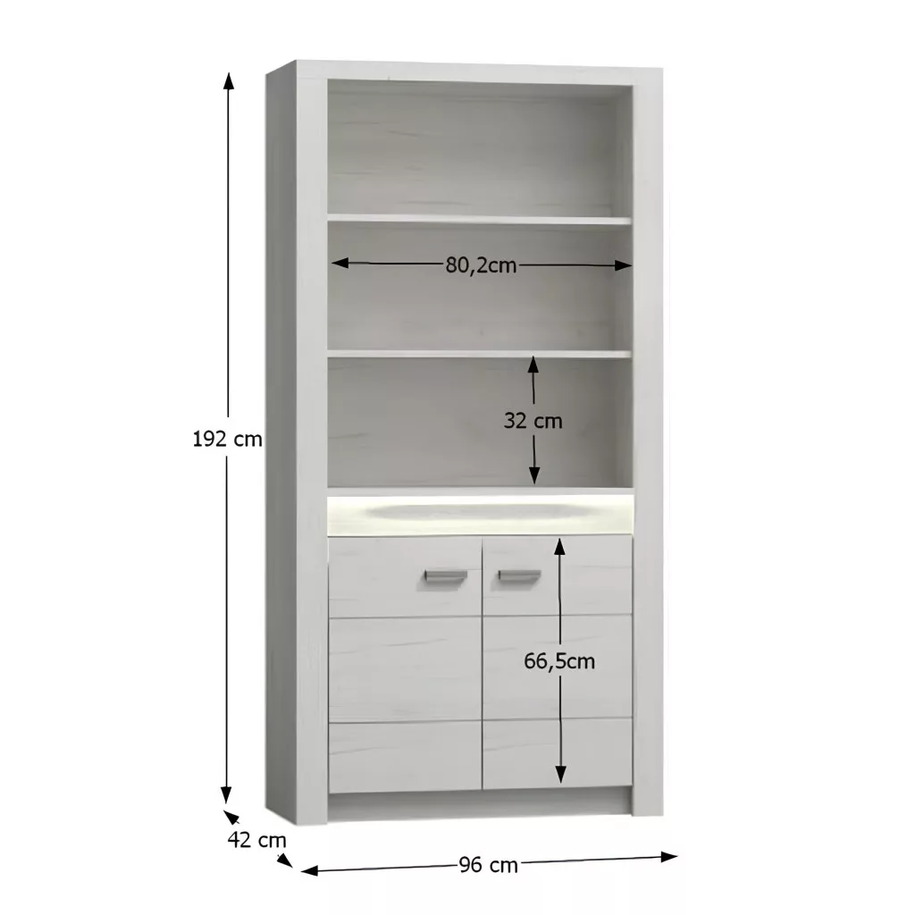 Az INFINITY kollekciót az átgondolt részletek és az időtlen megjelenés teszi kivételessé. A bútor karakterét a **hangsúlyos dombornyomásos rajz** és a festett fa részek adják, amelyek egyedi, masszív hatást keltenek. A gondos tervezés eredményeként ez a **könyvállvány** egyszerre kínál nyitott és zárt tárolási lehetőségeket. A felső részén **két nyitott polc** található, melyek **három tágas rakodóteret** hoznak létre – ideális helyet biztosítva kedvenc könyveidnek, dísztárgyaidnak vagy családi fotóidnak. Az alsó, **kétajtós szekrény** diszkrét tárolóhelyet nyújt mindazoknak a tárgyaknak, amelyeket nem szeretnél szem előtt tartani.