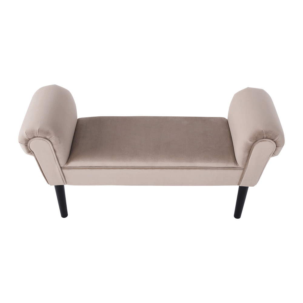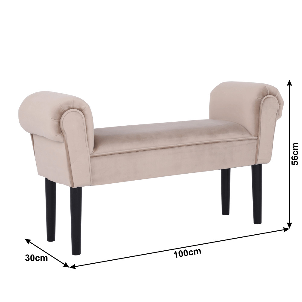 A Burda **ülőke** több, mint egy egyszerű bútordarab; a kényelem és a kifinomult ízlés megtestesítője. Az egyszerű, mégis **szilárd faszerkezetű lábak** magabiztos alapot nyújtanak, míg fekete színük elegáns kontrasztot alkot a kárpitozással. Az ülőfelületet borító, kellemes tapintású Velvet szövet finom bézs-szürke árnyalata nyugalmat és melegséget sugároz, így könnyedén beilleszthető a legtöbb színvilágba. Ez a sokoldalú **zsámoly** tökéletes kiegészítője lehet egy előszobának, hálószobának az ágy végében, vagy akár a nappalinak, mint egy extra ülőhely vagy stílusos **lábtartó**.