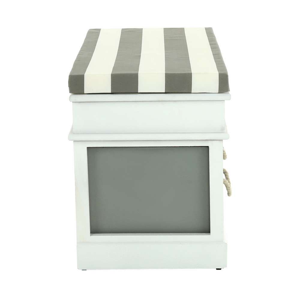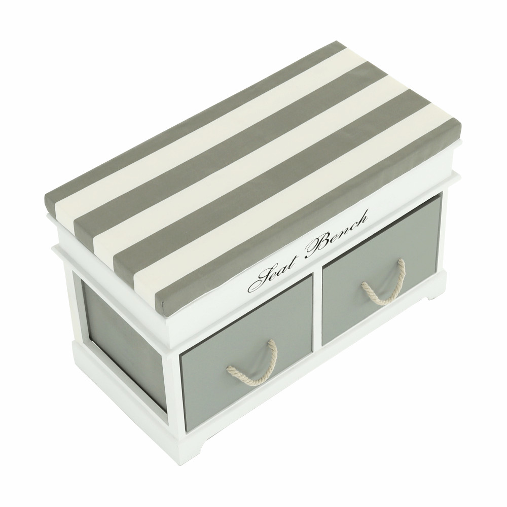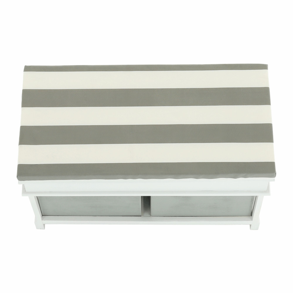 Gyakran szembesülsz a kihívással, hogy egy kisebb helyiségbe, például az előszobába vagy a hálószobába hogyan csempéssz egyszerre kényelmes ülőhelyet és diszkrét tárolási lehetőséget? A SEAT BENCH 2 NEW padot pontosan ezekre az igényekre terveztük. Ez a fából készült, elegáns fehér bútordarab eredeti, romantikus stílusával azonnal megragadja a tekintetet, miközben praktikus funkciókkal gazdagítja otthonodat. Két tágas, sötétszürke fiókja rejtett tárolóhelyet biztosít sálaknak, kesztyűknek vagy egyéb apróságoknak, a hozzá tartozó, kényelmes, szürke csíkos mintás párna pedig gondoskodik a maximális komfortról.