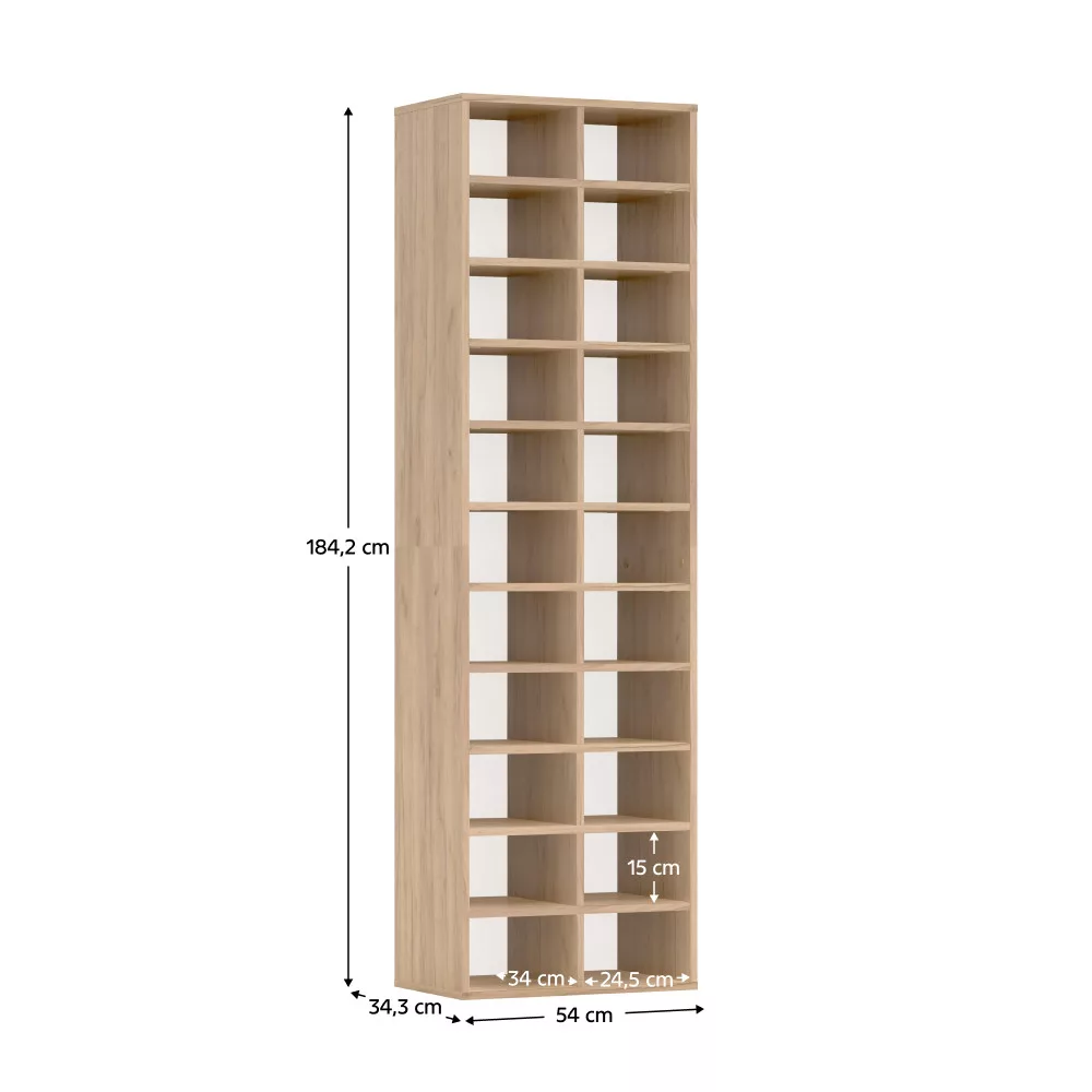 Az IGNO sokoldalúsága valódi értéket képvisel. Képzeld el, hogyan alakul át a tered, amikor minden tárgy a helyére kerül. Az előszobában elegáns és praktikus **előszobai cipőtárolóként** funkcionálhat, ahol a **két sorba rendezett polcokon** átláthatóan rendszerezheted lábbelijeidet, így ez a bútor ideális **cipőtartó** vagy **cipős állvány**. Az irodában vagy a dolgozósarokban megbízható **polcos szekrényként** szolgálhat könyvek, akták és irodaszerek számára, míg a nappaliban vagy a hálószobában kiegészítők és személyes tárgyak kaphatnak benne helyet. A **laminált DTD** anyag garantálja a tartósságot és a könnyű tisztíthatóságot.