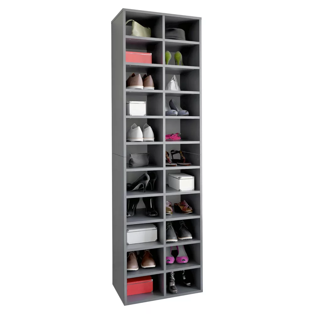 A rendezett és esztétikus otthon megteremtésekor kulcsfontosságú a tárolás. Az IGNO univerzális polcos szekrény éppen ezt a harmóniát hozza el, hiszen egyszerre szolgál elegáns cipősszekrényként és multifunkciós tárolóként is. Minimalista, grafit színű kialakítása és praktikus, magas felépítése révén szűk helyeken is ideális megoldást nyújt.