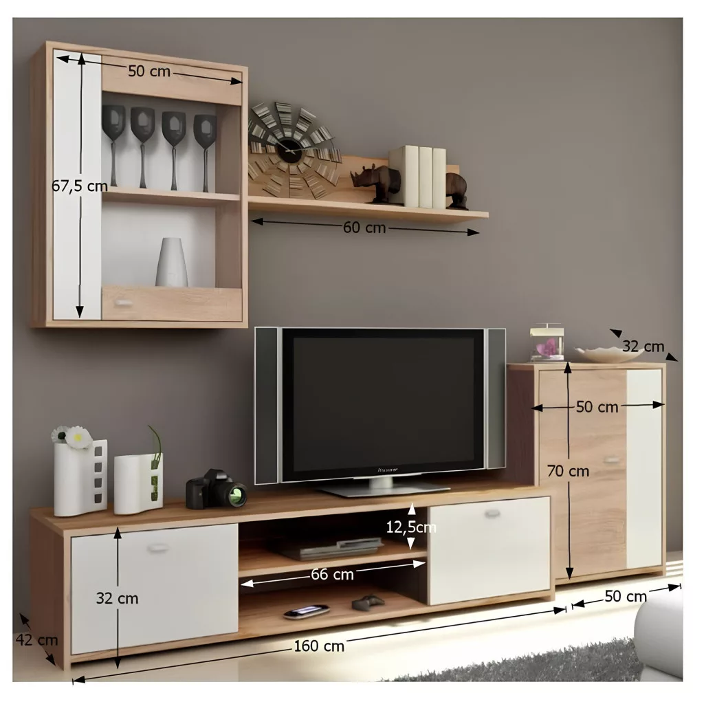 fehér és a sonoma tölgy színkombinációjával világos, szellős és barátságos hangulatot teremt. A bőséges és okosan elrendezett tárolóhelyeken kényelmesen elhelyezheted könyveidet, dísztárgyaidat és elektronikai eszközeidet, rendet tartva a legfontosabb közösségi térben.