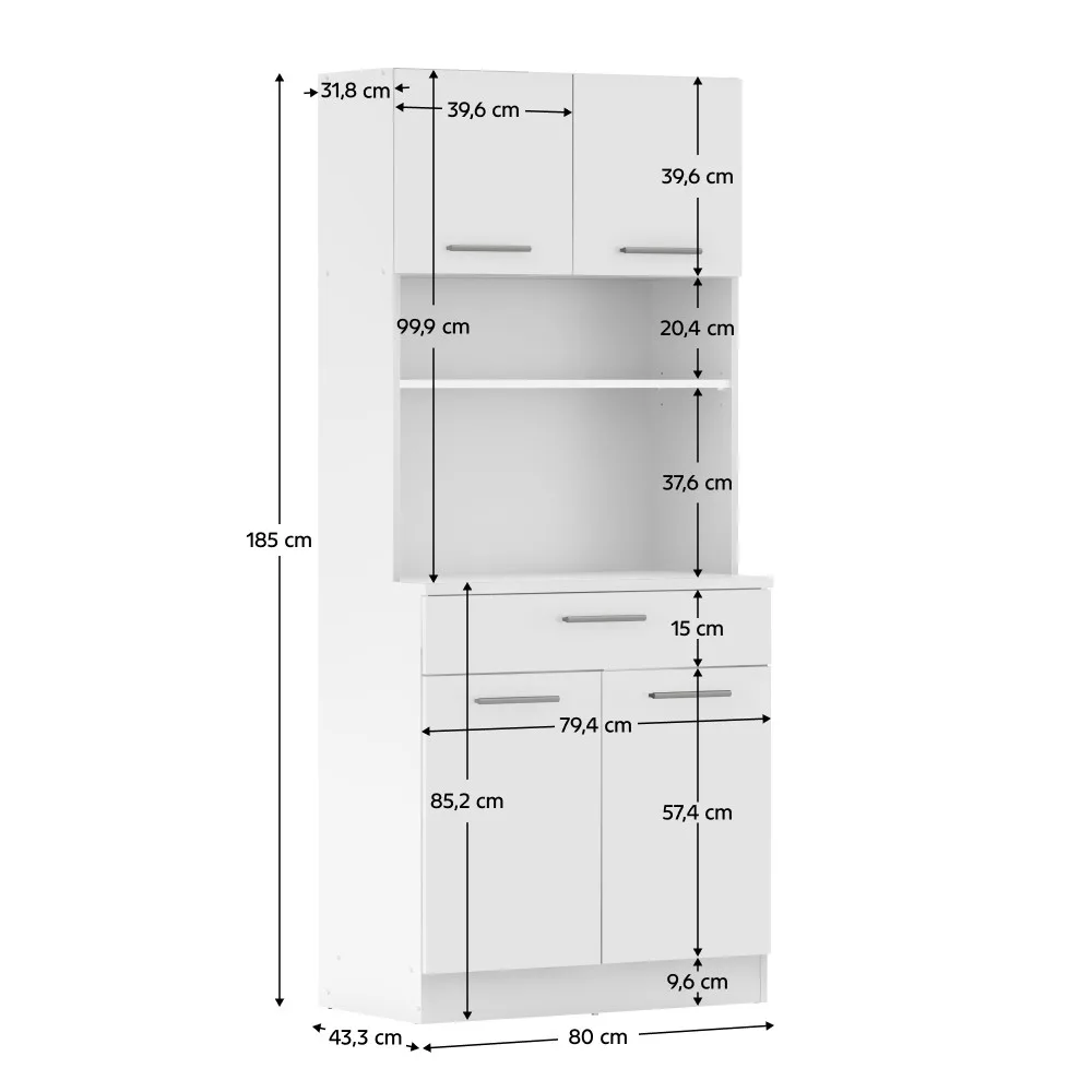- Méretek (Szélesség x Mélység x Magasság): 80 x 43,3 x 185 cm