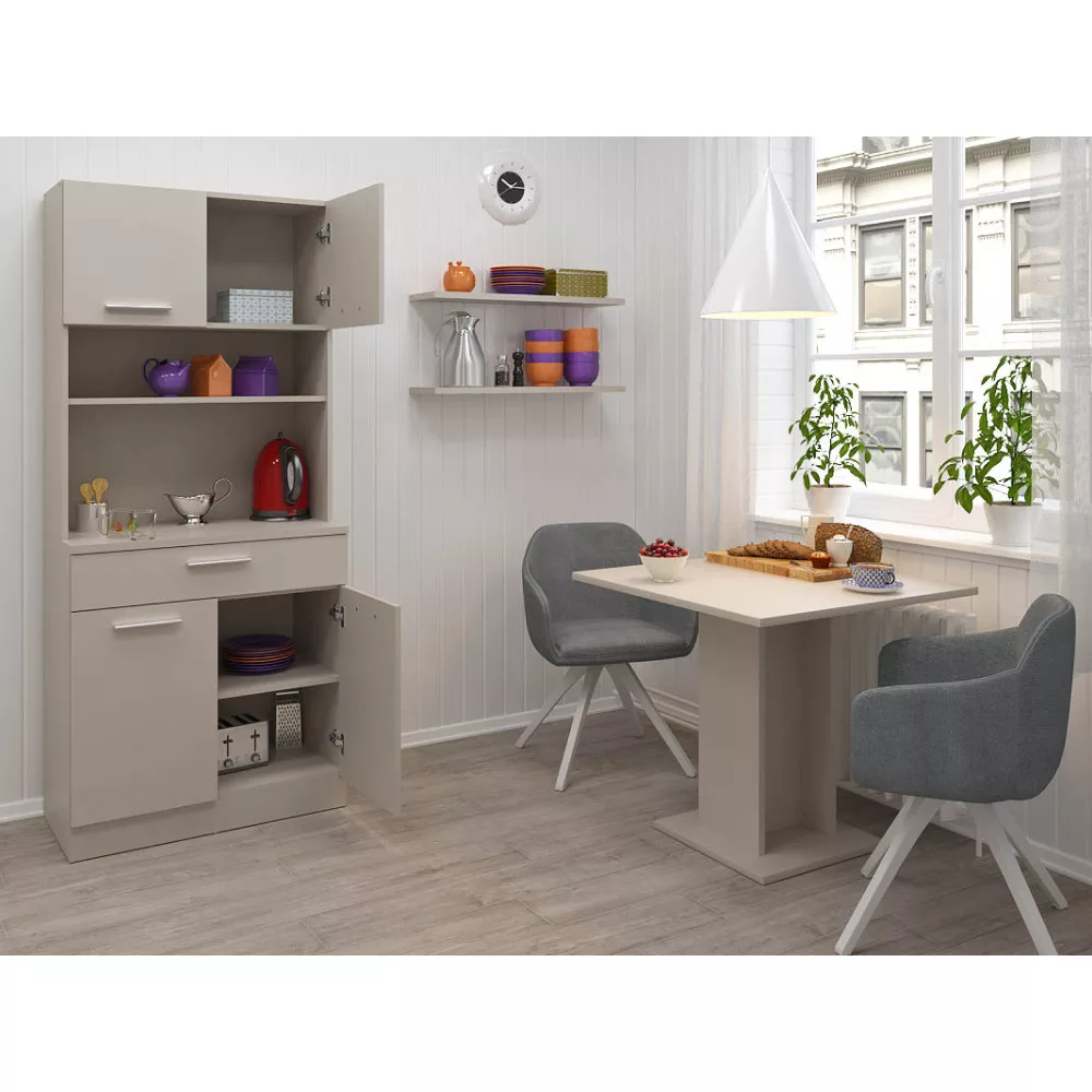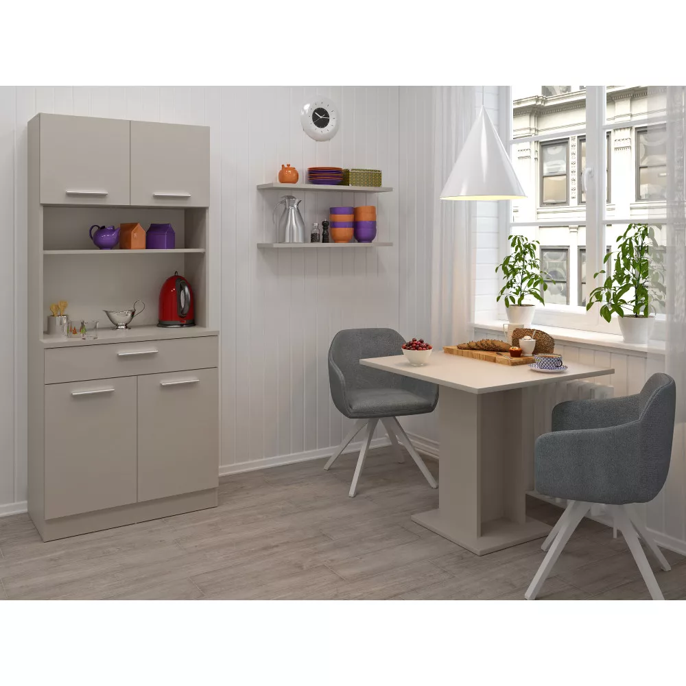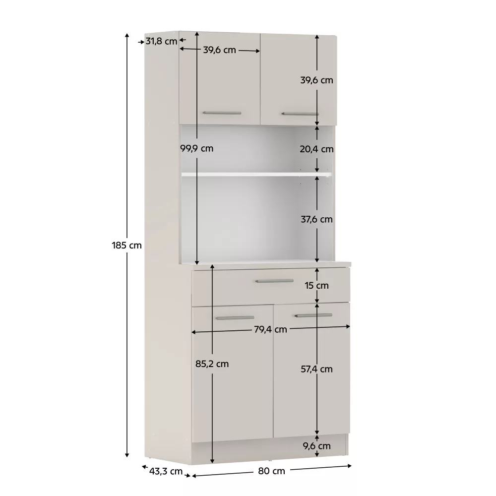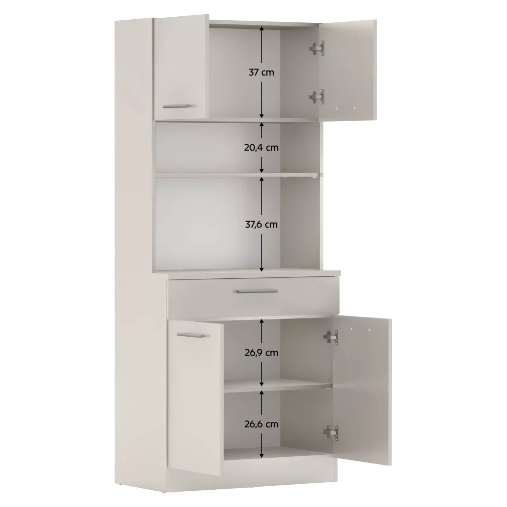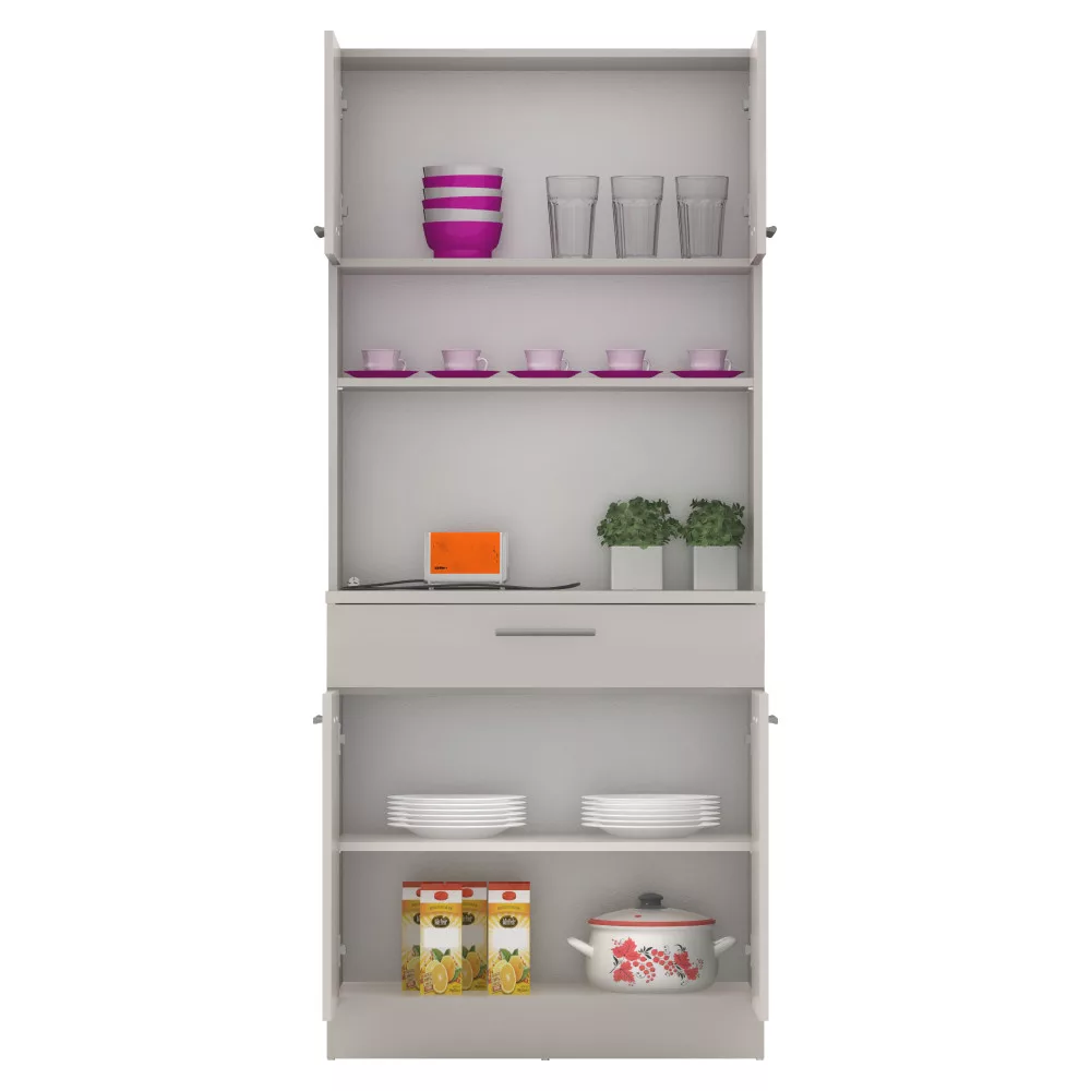 A gondos tervezésnek köszönhetően a tárolókapacitás maximalizálva van. A négyajtós kialakítás két felső és két alsó szekrényt rejt, melyekben kényelmesen elférnek a nagyobb edények és konyhai eszközök. A tágas, 79,4x15 cm méretű fiók tökéletes evőeszközök vagy textíliák rendszerezésére, teherbírása 5 kg. A polcok szintén 5 kg terhelhetőséggel bírnak, így biztonságosan helyezheted el rajtuk értékesebb tárgyaidat is.
