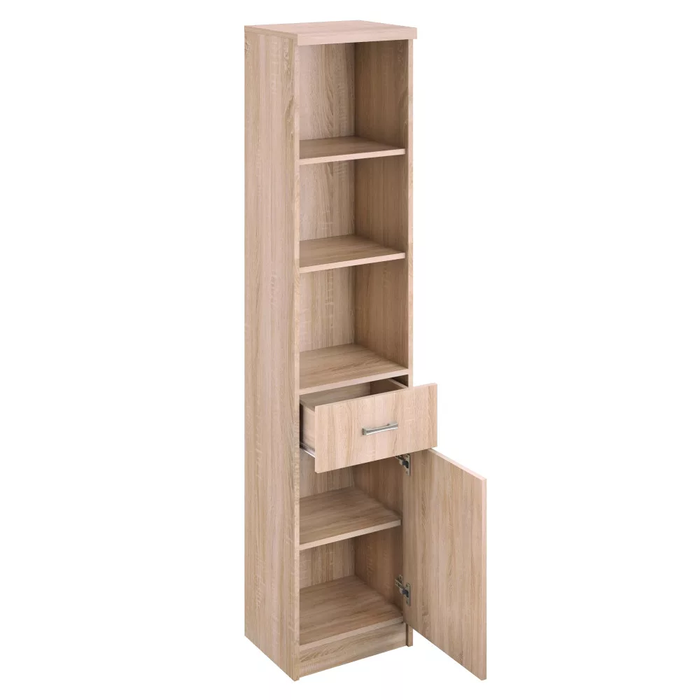 A tervezés során a letisztultság és a funkcionalitás volt a fő szempont. Az egyszerűség varázsa ebben a darabban is megmutatkozik, ahol a tökéletes sonoma tölgy kivitelezés világosságot és frissességet csempész a helyiségbe. A modern megjelenést a finom, króm fogantyúk teszik teljessé, amelyek elegáns kontrasztot alkotnak a fa természetes hatásával. Ez a tároló polc ideális választás lehet a nappaliba, a dolgozószobába vagy akár a hálószobába is, hogy rendszerezetten tárolhasd könyveidet, dísztárgyaidat vagy személyes emlékeidet.