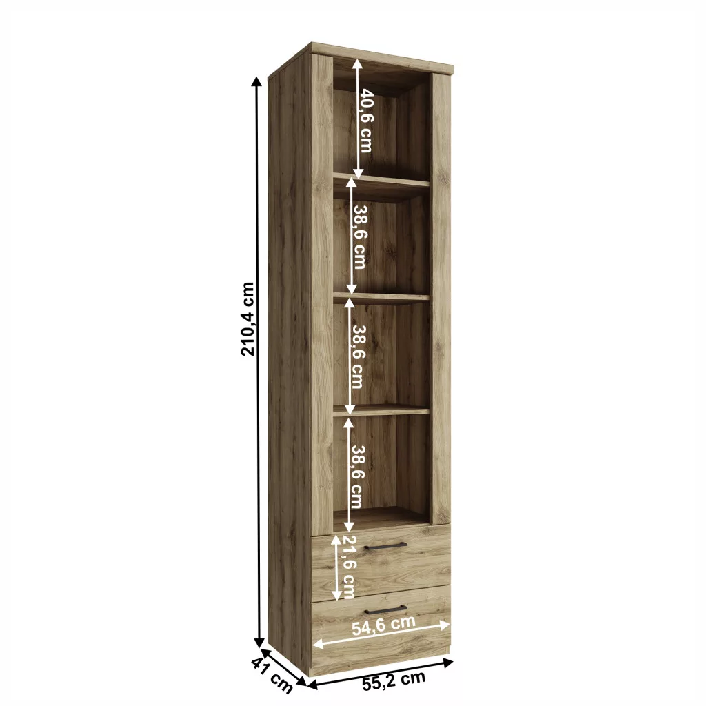 A DORSI bútorok tervezésekor a funkcionalitás volt az egyik legfőbb szempont. Ez a tároló állvány nyitott polcaival és két tágas fiókjával ideális választás könyvek, dísztárgyak vagy személyes emlékek elhelyezésére. A letisztult vonalvezetést és a modern megjelenést a diszkrét, fekete színű műanyag fogantyúk egészítik ki, amelyek kényelmes használatot biztosítanak a mindennapok során. Ez a bútordarab nem csupán egy praktikus tároló, hanem otthonod meghatározó design eleme is lehet, amelyre mindig öröm lesz ránézni.