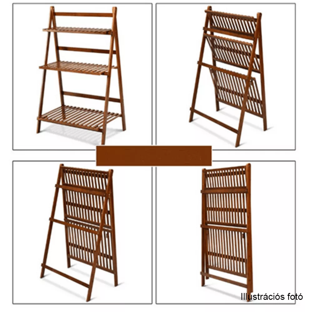 - Kialakítás: Három, lépcsőzetesen elhelyezett polc