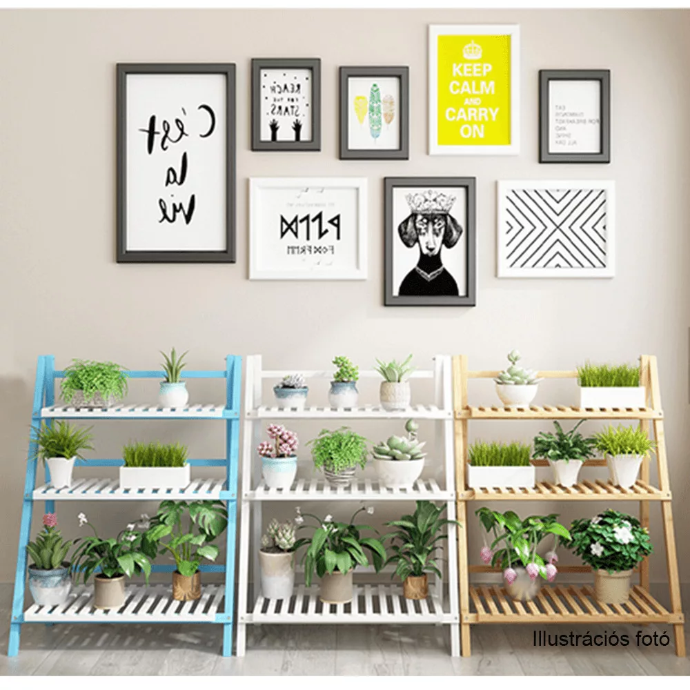 A lépcsőzetes elrendezésű, három különböző szélességű polc lehetővé teszi, hogy a kisebb és nagyobb cserepes növények egyaránt tökéletesen érvényesüljenek. A bambusz természetes textúrája és a fehér szín letisztult kombinációja harmonikus légkört teremt, legyen szó a nappalid egy csendes sarkáról, a teraszodról vagy egy tágasabb erkélyről. Ez a design nem csupán egy praktikus polcrendszer, hanem egy olyan dekorációs elem, amely nyugalmat és természetességet sugároz, hozzájárulva egy kiegyensúlyozottabb élettér kialakításához. Sokoldalúságának köszönhetően nem helyettesít egy klasszikus fali polcot, de annál jóval több szabadságot ad a tér rendezésében.