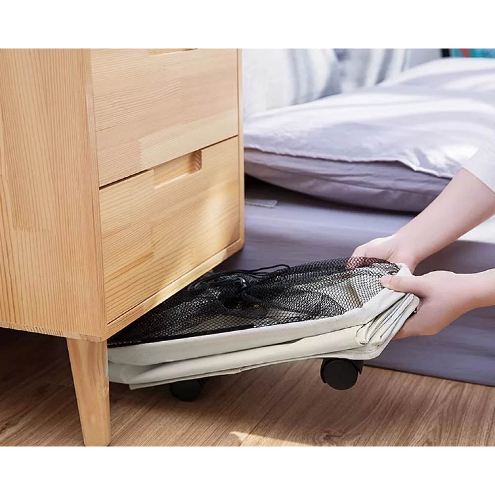 A PRIOR összecsukható szennyeskosár nélkülözhetetlen társ a mindennapi rendszerezésben. Strapabíró, vízálló bézs szövetből készült, és 4 keréken gurul a könnyed mozgatásért, így a ruhaválogatás és szállítás többé nem jelent kihívást. Amikor nincs rá szükséged, egyszerűen hajtsd össze, hogy helyet takaríts meg. Ez a sokoldalú textil szennyestartó a diszkrét bézs színének és az elegáns fekete fogantyúknak köszönhetően könnyedén illeszkedik bármilyen belső térbe, legyen szó a fürdőszobáról, a mosókonyháról vagy akár a hálószobáról. A könnyű mozgathatóságot a kerekek garantálják, melyek közül egy fékkel is rendelkezik, így a ruháskosár stabilan a helyén marad, amikor csak szeretnéd.
