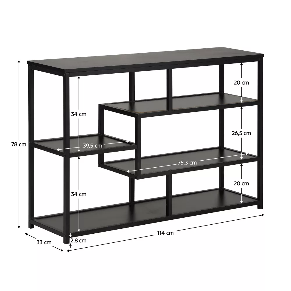 Ez a modern tároló állvány öt, különböző magasságban elhelyezett polccal rendelkezik, amelyek ideális felületet biztosítanak kedvenc könyveid, dísztárgyaid, növényeid vagy praktikus tárolódobozaid számára. A nyitott kialakítású polcrendszer szellős, könnyed hatást kelt a térben, miközben segít, hogy a legfontosabb tárgyaid mindig szem előtt és kéznél legyenek. A stabil fém váz nemcsak a hosszú élettartamot garantálja, hanem ipari, mégis letisztult karaktert kölcsönöz a bútornak. Sokoldalúságának köszönhetően kiválóan megállja a helyét a nappaliban, az előszobában, a hálószobában vagy akár a dolgozószobában is, lehetőséget teremtve egy egységes és átgondolt enteriőr kialakítására.