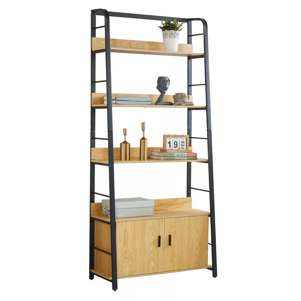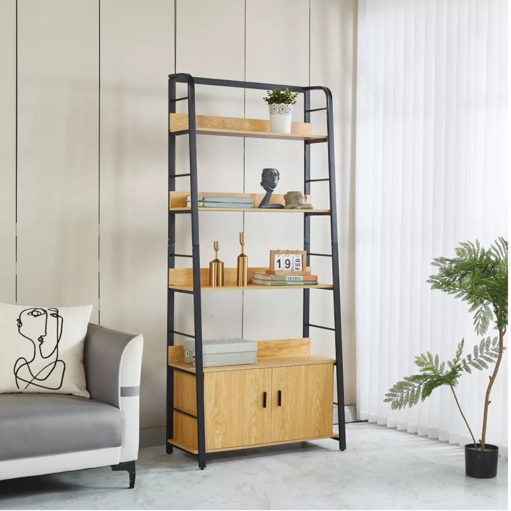 Ez a sokoldalú tároló állvány kiválóan helytáll a nappaliban, egy dolgozószobában vagy akár egy modern irodai környezetben is. Bőséges tárolóhelyet biztosít a legfontosabb tárgyaid számára. A négy nyitott polcon elegánsan elhelyezheted kedvenc könyveidet, dísztárgyaidat, a nyaralásokról hozott emlékeidet vagy akár zöld növényeidet is. Hasonlóan egy komplexebb polcrendszerhez, lehetőséget ad a kreatív és személyre szabott elrendezésre. Az állvány alsó részén található kétajtós szekrény pedig diszkrét tárolási lehetőséget kínál azoknak a dolgoknak, amelyeket nem szeretnél szem előtt tartani.