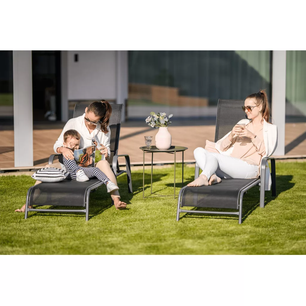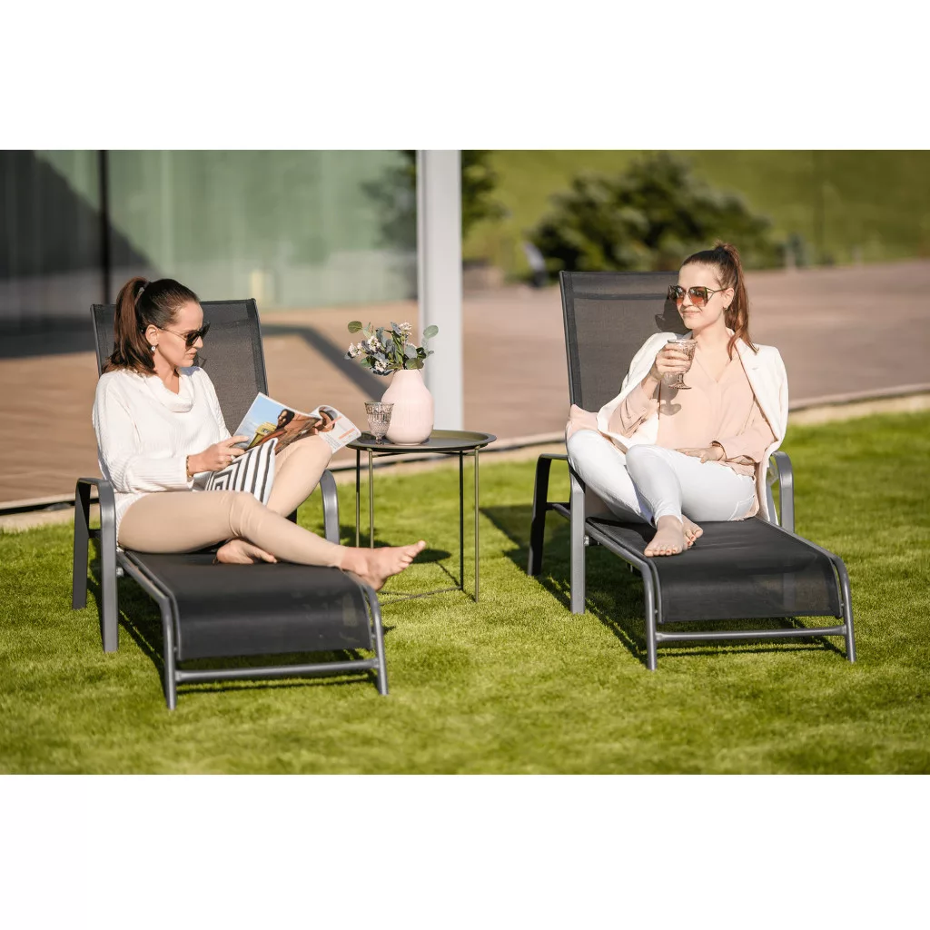 A nyári pihenés esszenciája a kényelem és a nyugalom, amelyhez elengedhetetlen egy megbízható és ergonomikus bútordarab. Az ATREO állítható kerti nyugágy tökéletes választás, ha egy olyan relax ágy után kutat, amely a funkcionalitást és a modern dizájnt ötvözi. Ez a fekete színű, tartós műanyagból készült napozóágy stabilitását a szürke, minőségi fém lábak biztosítják. Az állítható háttámasznak köszönhetően könnyedén megtalálhatja a legkényelmesebb pozíciót olvasáshoz, napozáshoz vagy egy délutáni sziesztához.