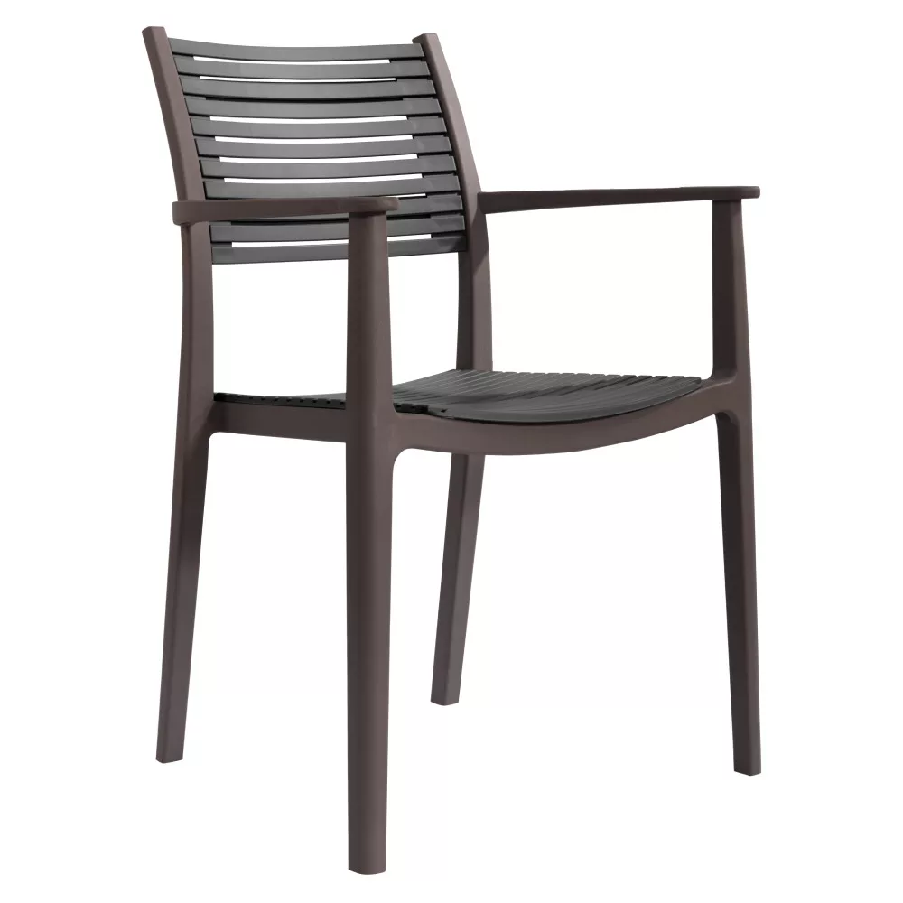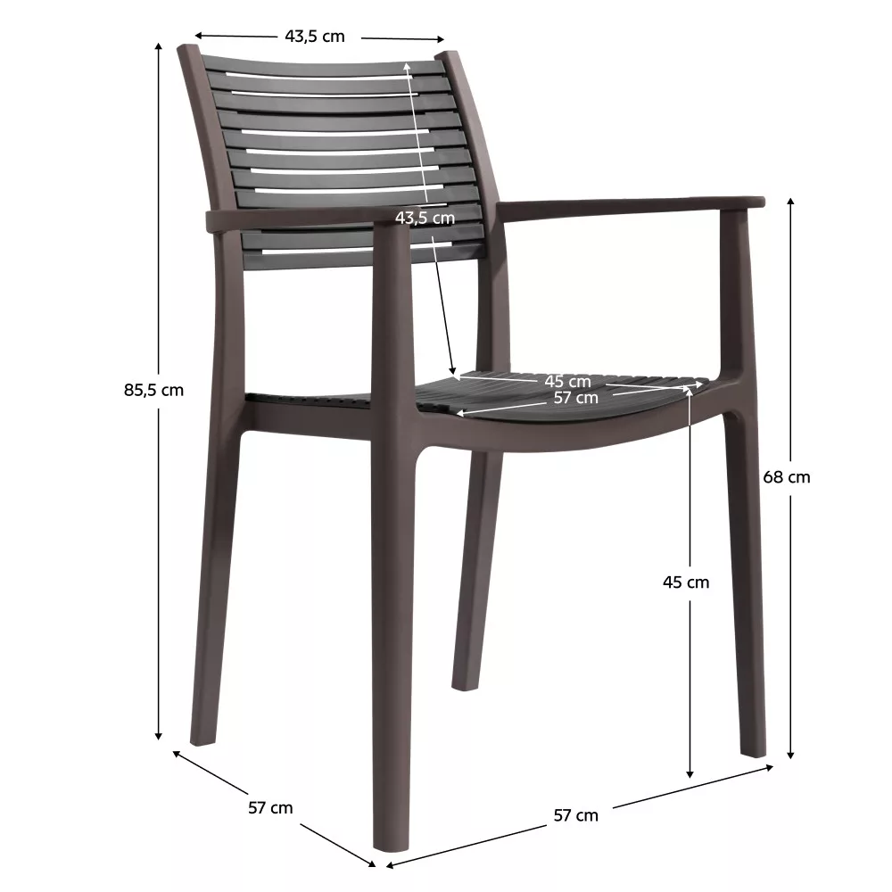 A modern, szürke árnyalatú ülőfelület és háttámla harmonikus egységet alkot az elegáns barna konstrukcióval, így a szék könnyedén beilleszthető a legtöbb környezetbe. A tartós műanyag anyagnak köszönhetően kiválóan ellenáll az időjárás viszontagságainak, így bátran használhatod kültéren és beltéren egyaránt. Nem igényel bonyolult összeszerelést, hiszen egészben szállítva érkezik hozzád, azonnal használatba vehető.
