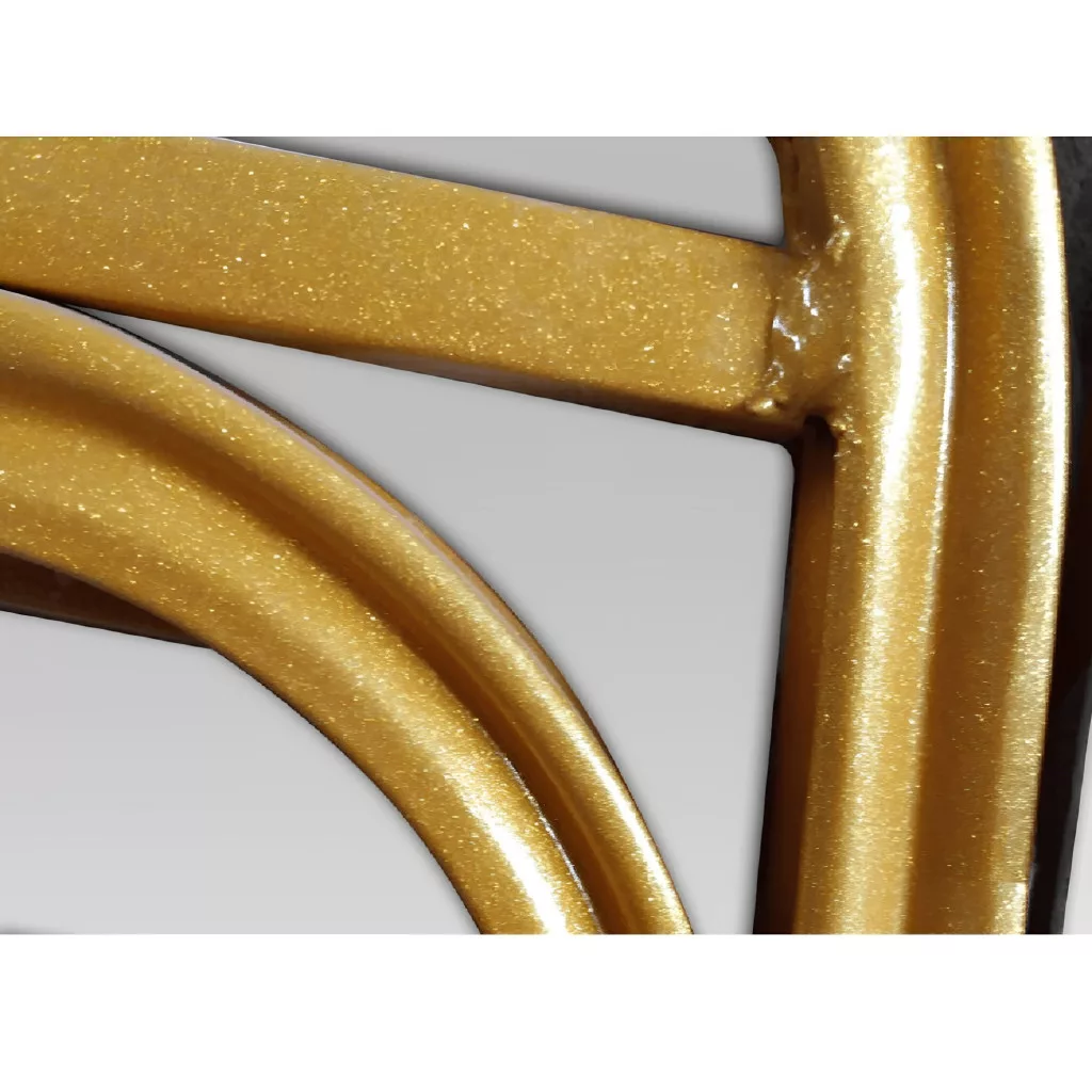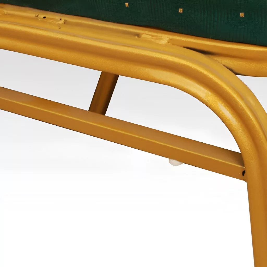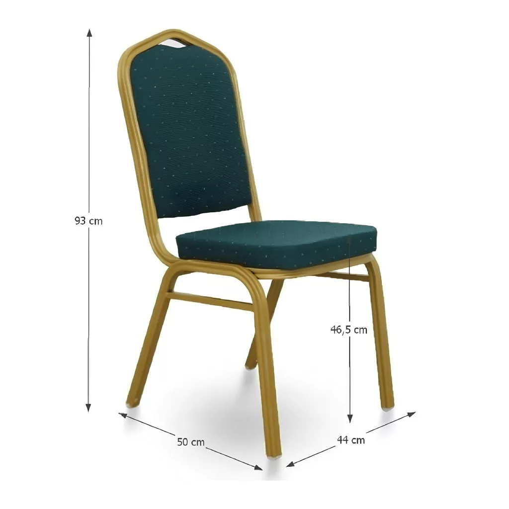A szék váza stabil fémből készült, amely egy kifinomult, matt arany árnyalatot kapott. Ehhez társul a kényelmes ülőrész és háttámla, melyet egyedi, zöld mintás szövetkárpit borít. A kárpit kopásállósága a Martindale-skála szerint 65 000, ami garanciát jelent a hosszú távú, intenzív használat melletti tartósságra és esztétikus megjelenésre. Ez a modell nemcsak a vendégterekben, hanem egy modern étkezőben is tökéletesen megállja a helyét, eleganciát sugározva.