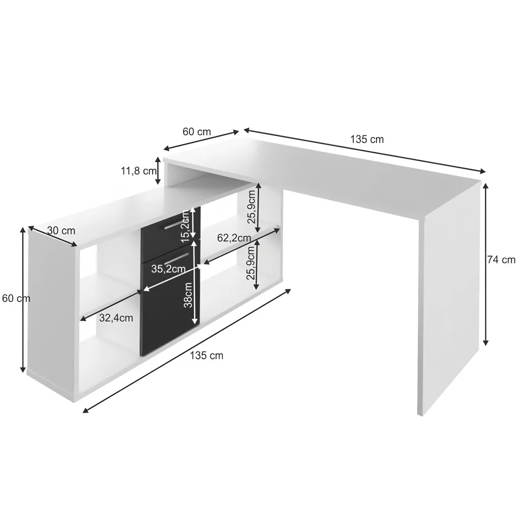 - Íróasztal mérete (SzéxMéxMa): 135x60x74 cm