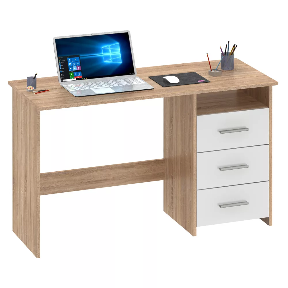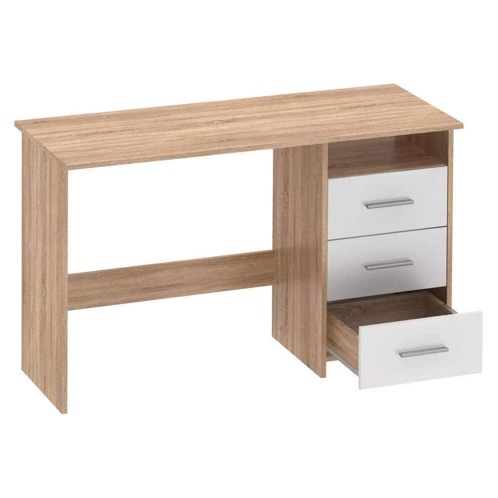 A megfelelő íróasztal megtalálása kulcsfontosságú, legyen szó egy diák birodalmának megteremtéséről, az otthoni iroda hatékonyságának növeléséről vagy egy inspiráló kreatív sarok kialakításáról. Ismerd meg a LARISTOTE NEW számítógépasztalt, amely letisztult dizájnjával, időtálló sonoma tölgy és fehér színkombinációjával, valamint kiemelkedően praktikus és univerzális kialakításával tökéletes alapot nyújt. A jobb vagy bal oldalra is szerelhető három fiók és a nyitott polc maximális rugalmasságot és bőséges tárolóhelyet biztosít számodra.