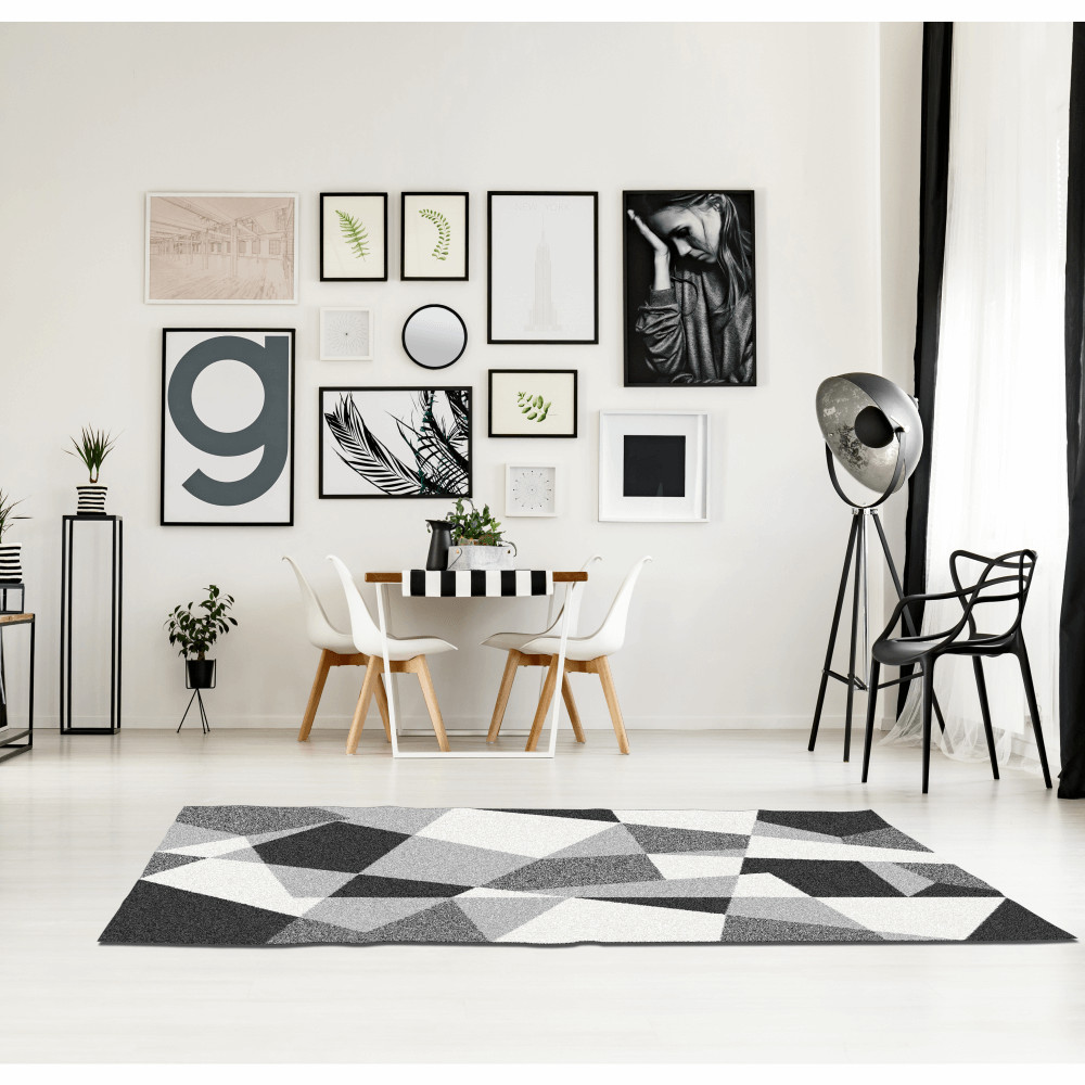 Egy jól megválasztott szőnyeg nem csupán a kényelmet szolgálja, hanem otthonod központi designelemévé is válhat, melegséget és egyedi karaktert kölcsönözve a térnek. A SANAR szőnyegünkkel pontosan ezt az élményt kínáljuk. Ez a kiemelkedő padlószőnyeg 100% polipropilénből készül, amely garantálja a tartósságot, miközben egyedi, örökzöld fekete, szürke és fehér geometrikus mintája modern légkört teremt. Ideális választás, ha egy dizájnos kiegészítőt és egy megbízható védelmezőt keresel padlód számára.