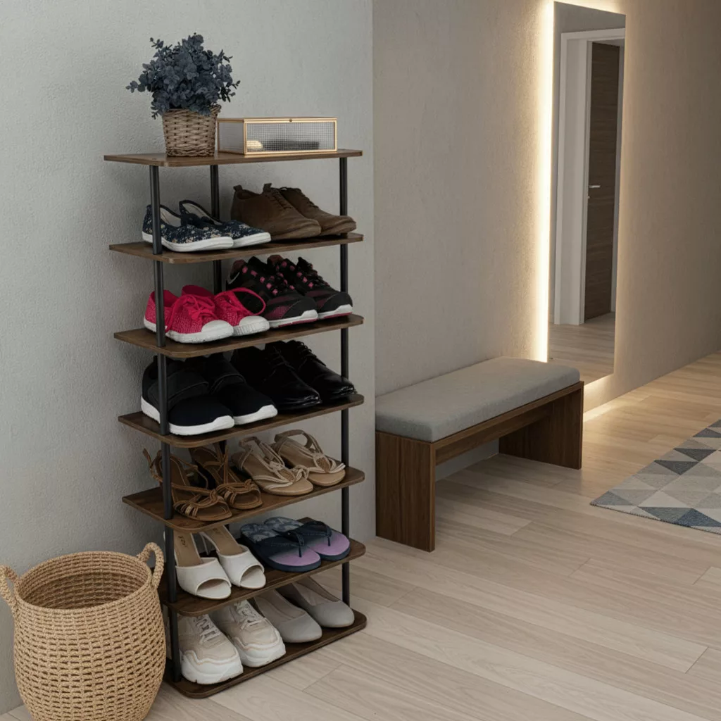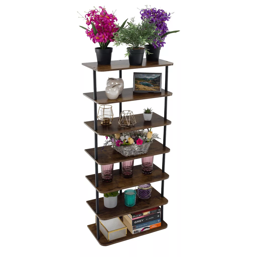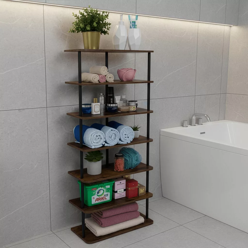 A harmonikus és átlátható otthon megteremtése gyakran a megfelelő tárolási megoldásoknál kezdődik. Az ETUDA TYP 2 polcrendszer erre a kihívásra kínál letisztult és praktikus választ. Ez a hat polcos állvány fekete fémvázzal és rusztikus fa dizájnú DTD forgácslap polcokkal rendelkezik, amely az indusztriális és a természetes stílusjegyeket ötvözi. Egyszerűségének köszönhetően ideális kiegészítője lehet előszobának, gardróbnak vagy akár egy dolgozószobának is, ahol fontos, hogy a legszükségesebb tárgyak mindig kéznél legyenek.