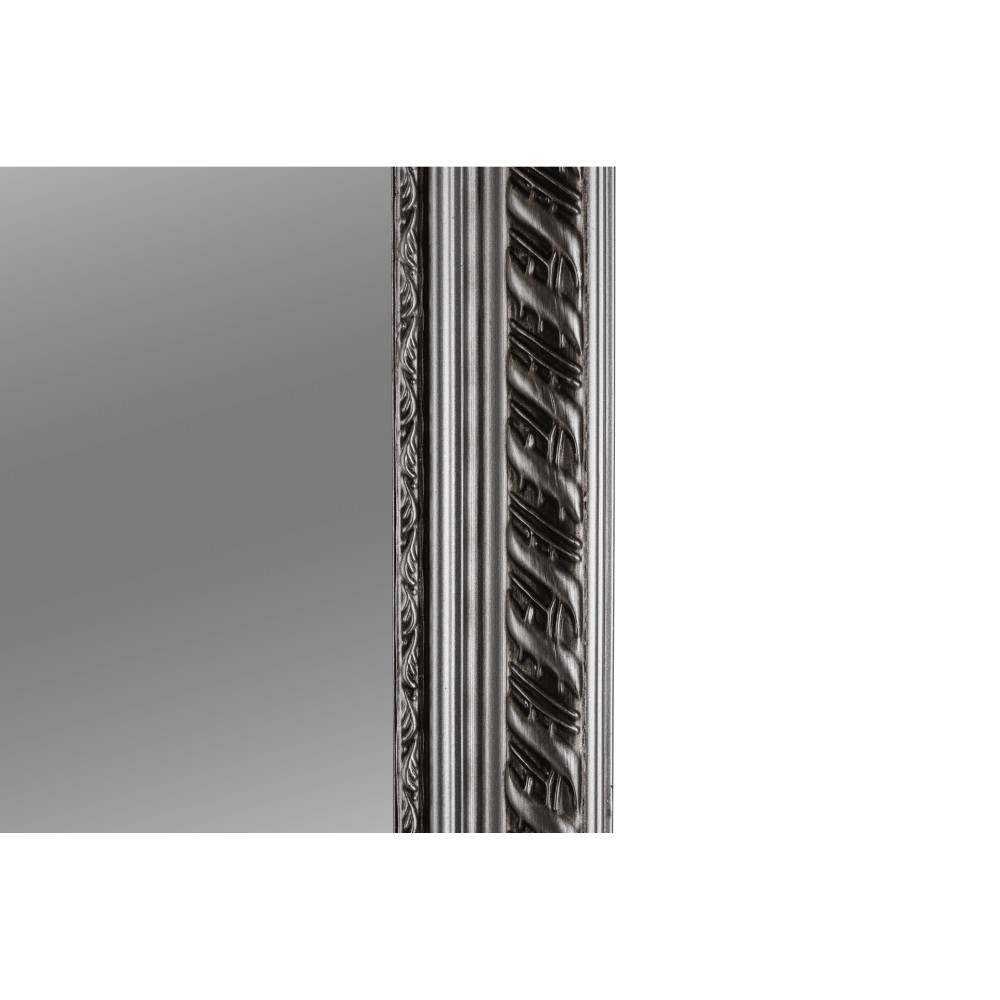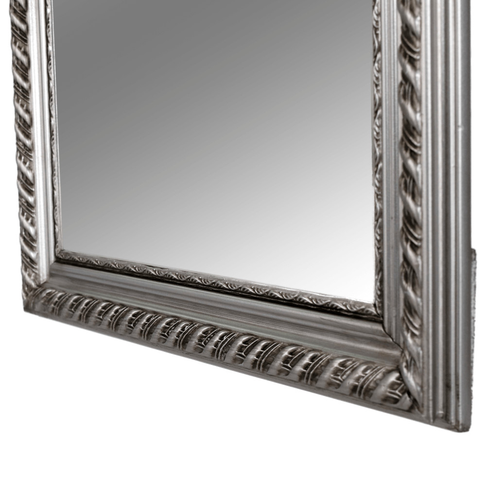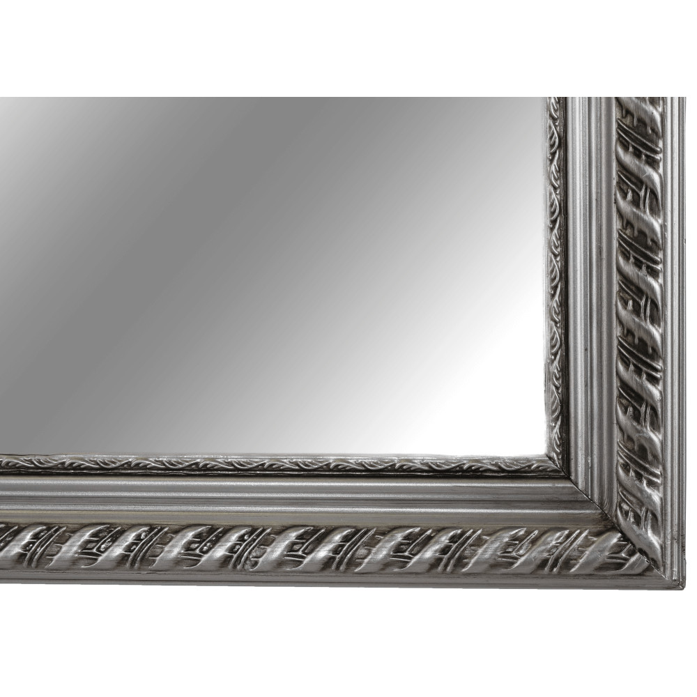 Az esztétikus megjelenésű, minőségi fa és üveg felhasználásával készült darab időtlen stílust képvisel. A ragyogó ezüst keret kiemeli a tükör letisztult vonalait, és finoman veri vissza a fényt, ezzel is hozzájárulva a szoba világosabb, szellősebb érzetéhez. A kiváló minőségű foncsorozás tiszta és torzításmentes tükörképet garantál, ami elengedhetetlen a mindennapi készülődés során.