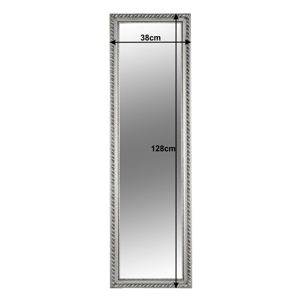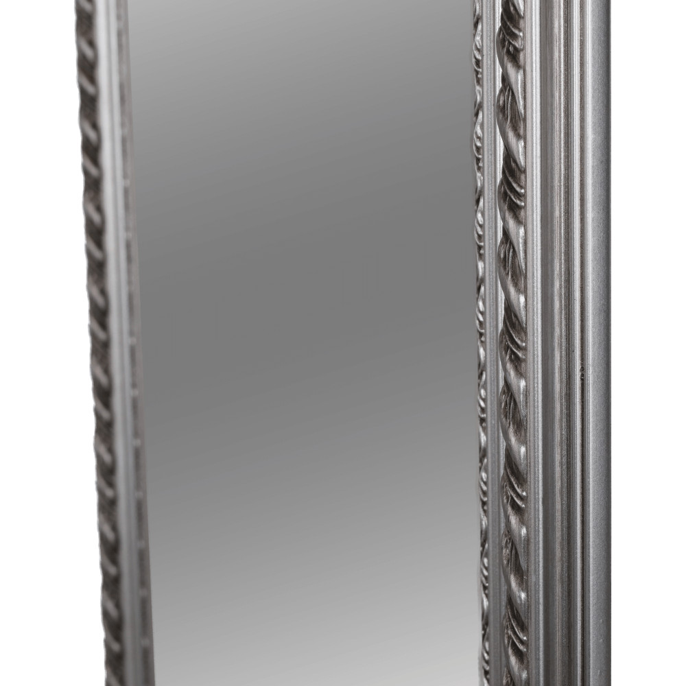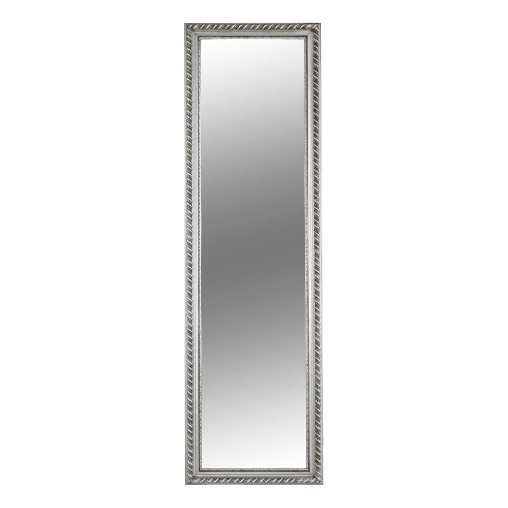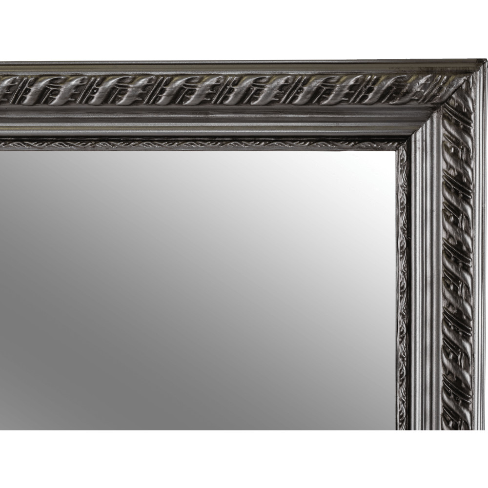 Az esztétikus megjelenésű, minőségi fa és üveg felhasználásával készült darab időtlen stílust képvisel. A ragyogó ezüst keret kiemeli a tükör letisztult vonalait, és finoman veri vissza a fényt, ezzel is hozzájárulva a szoba világosabb, szellősebb érzetéhez. A kiváló minőségű foncsorozás tiszta és torzításmentes tükörképet garantál, ami elengedhetetlen a mindennapi készülődés során.