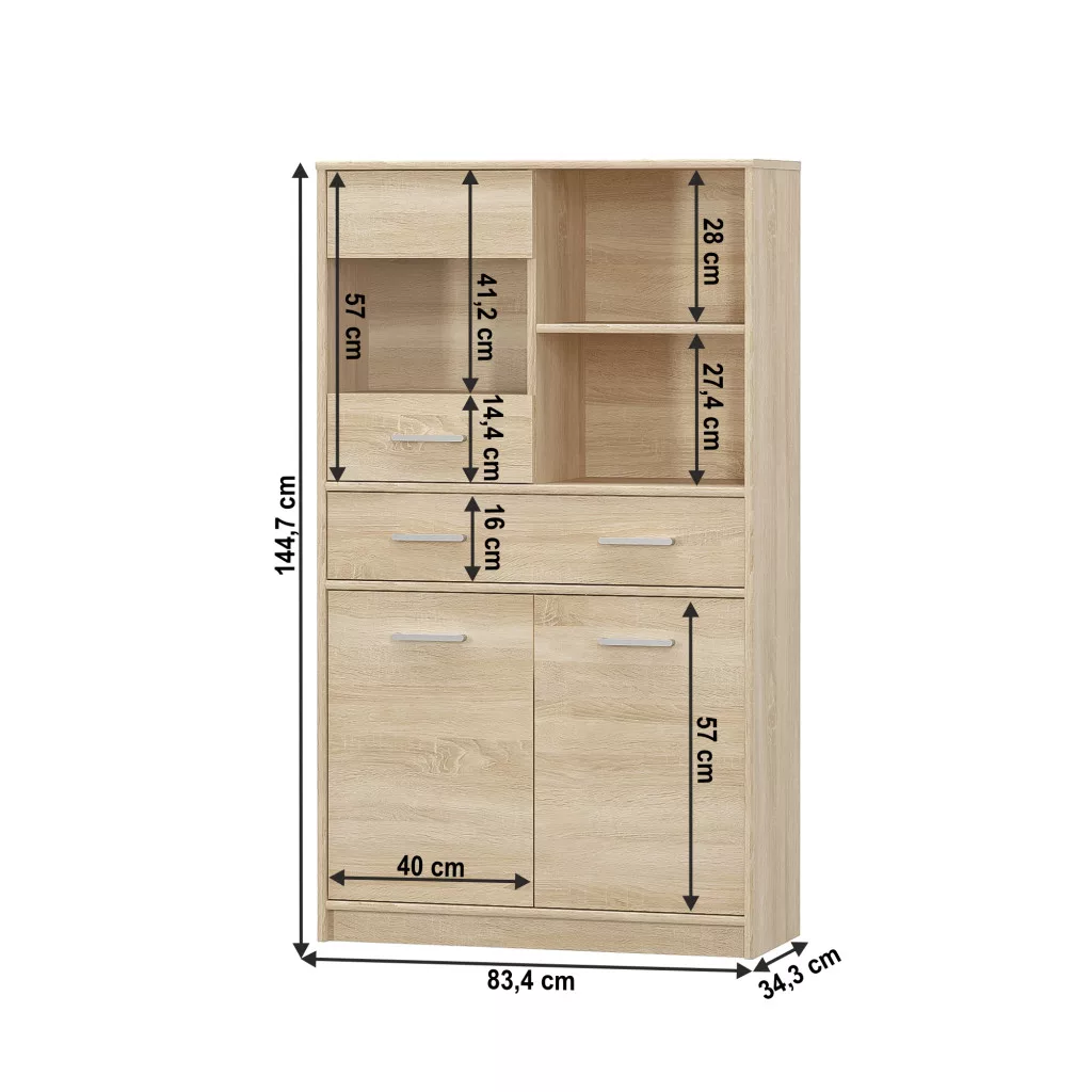 - Méretek (Szélesség x Mélység x Magasság): 83,4 x 34,3 x 144,7 cm